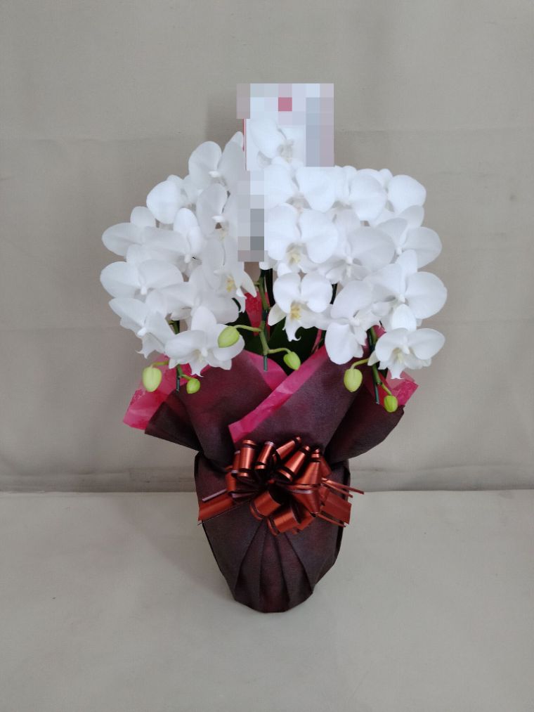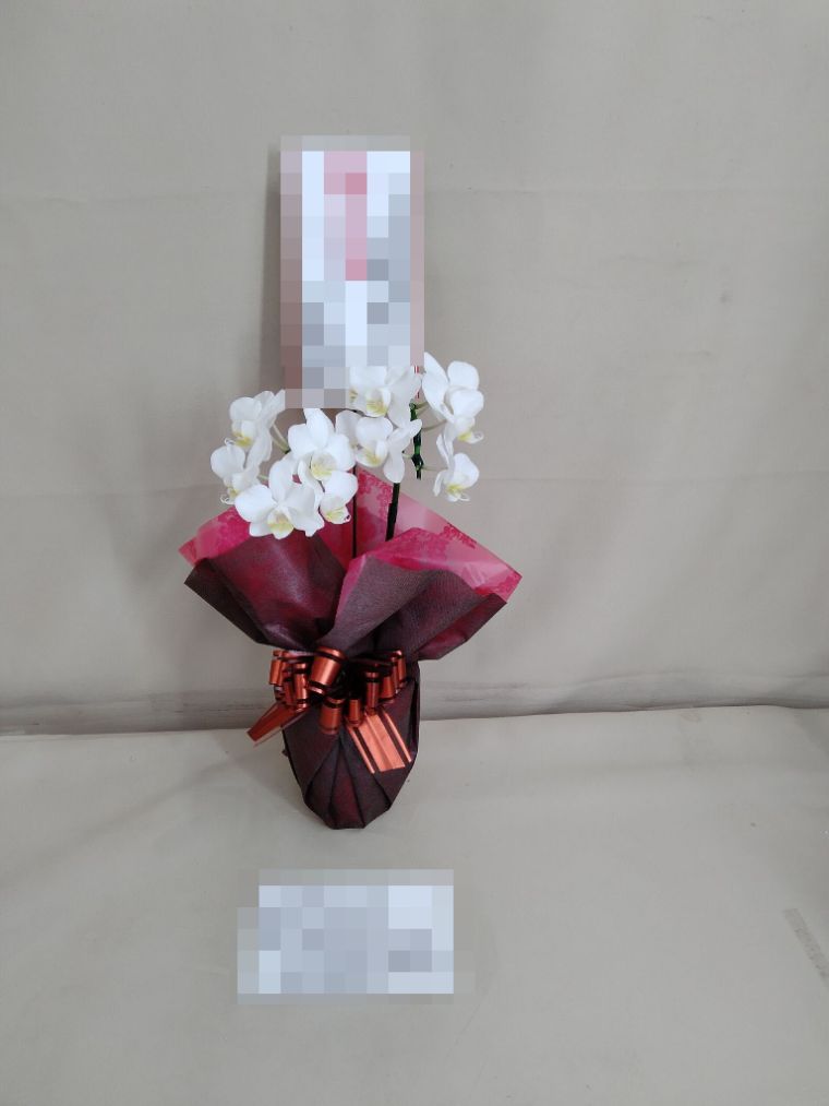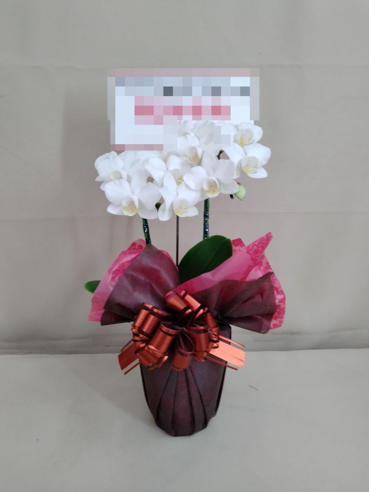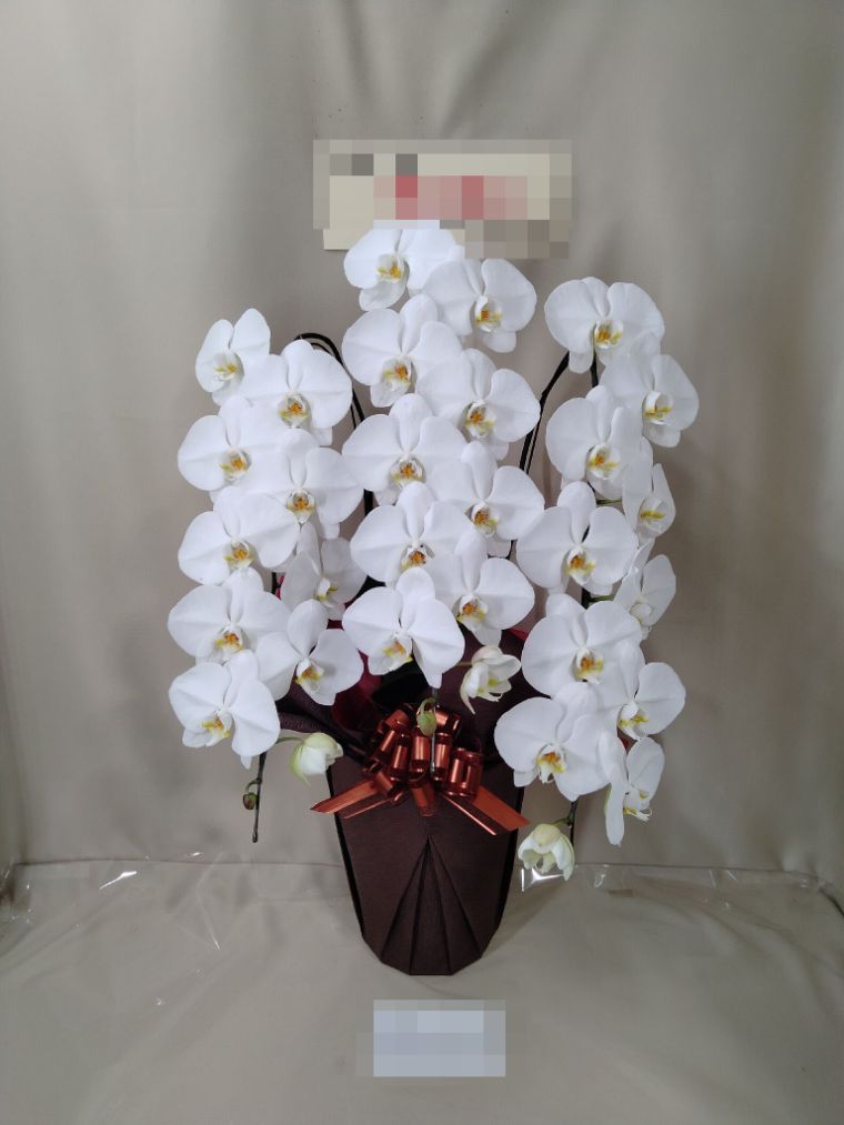 胡蝶蘭の実際にお届けした写真です。花秘書では発送前に写真をメールで送信致しますので安心して大切な顧客や取引様へのギフトにご利用頂けます。