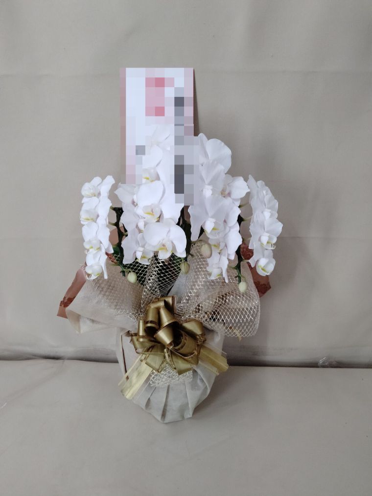 胡蝶蘭の実際にお届けした写真です。花秘書では発送前に写真をメールで送信致しますので安心して大切な顧客や取引様へのギフトにご利用頂けます。