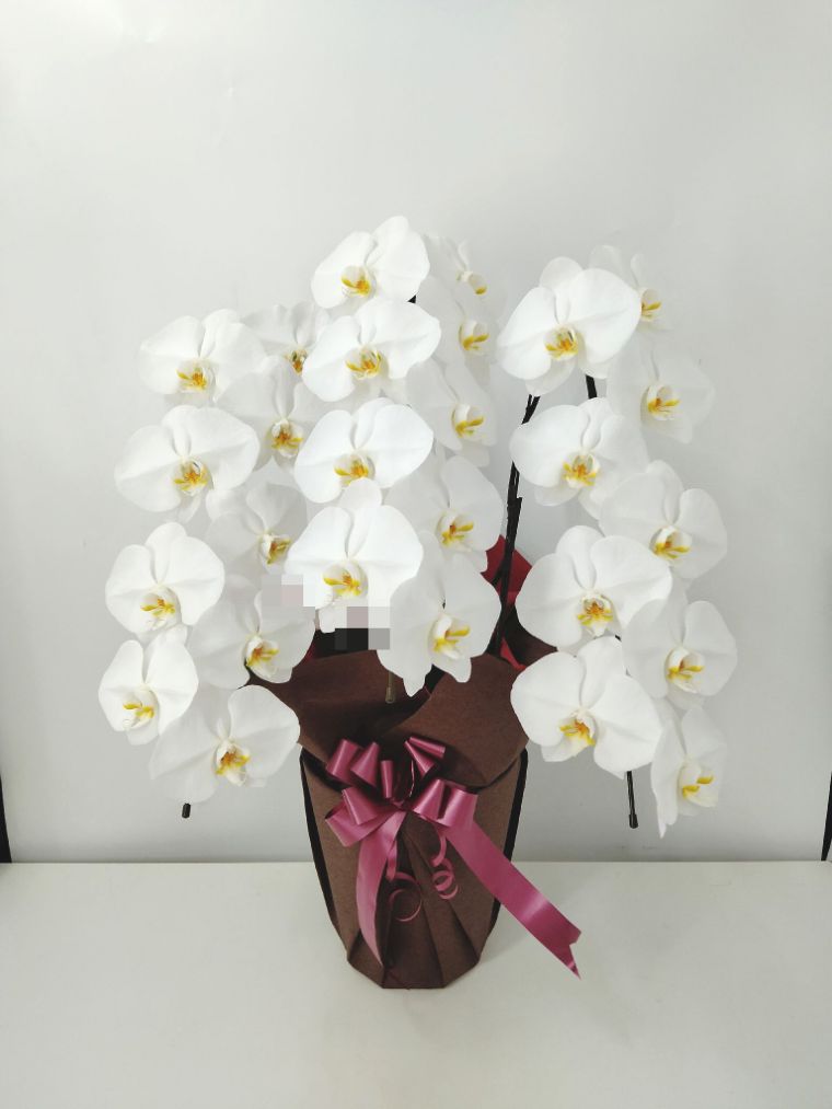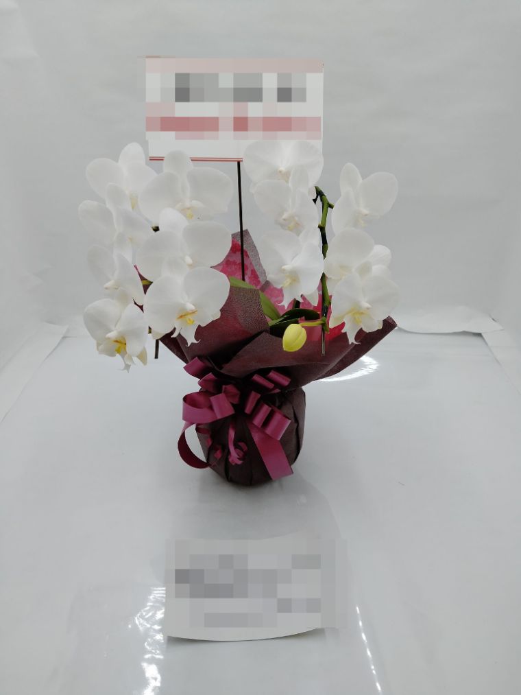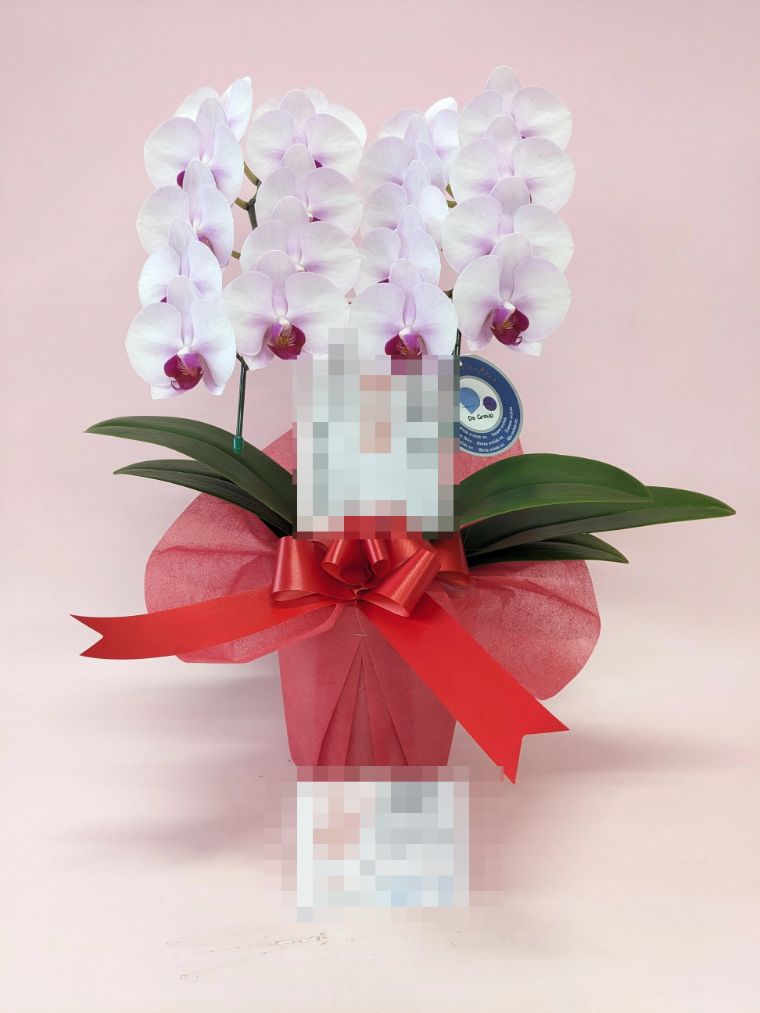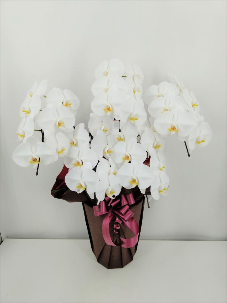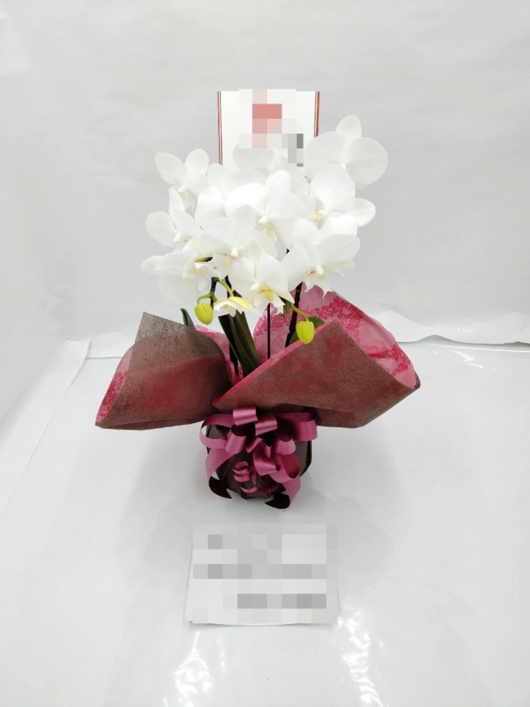 胡蝶蘭の実際にお届けした写真です。花秘書では発送前に写真をメールで送信致しますので安心して大切な顧客や取引様へのギフトにご利用頂けます。