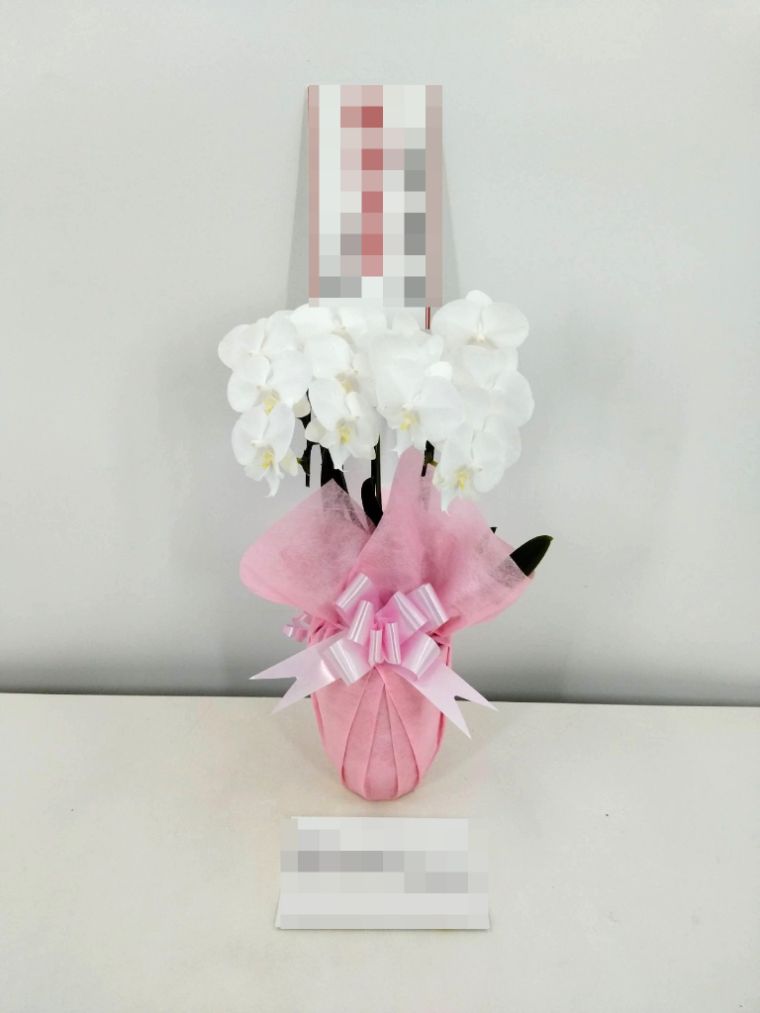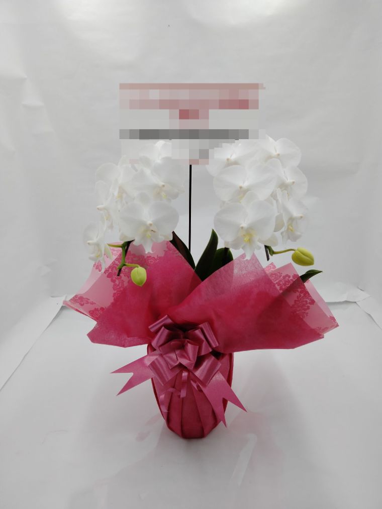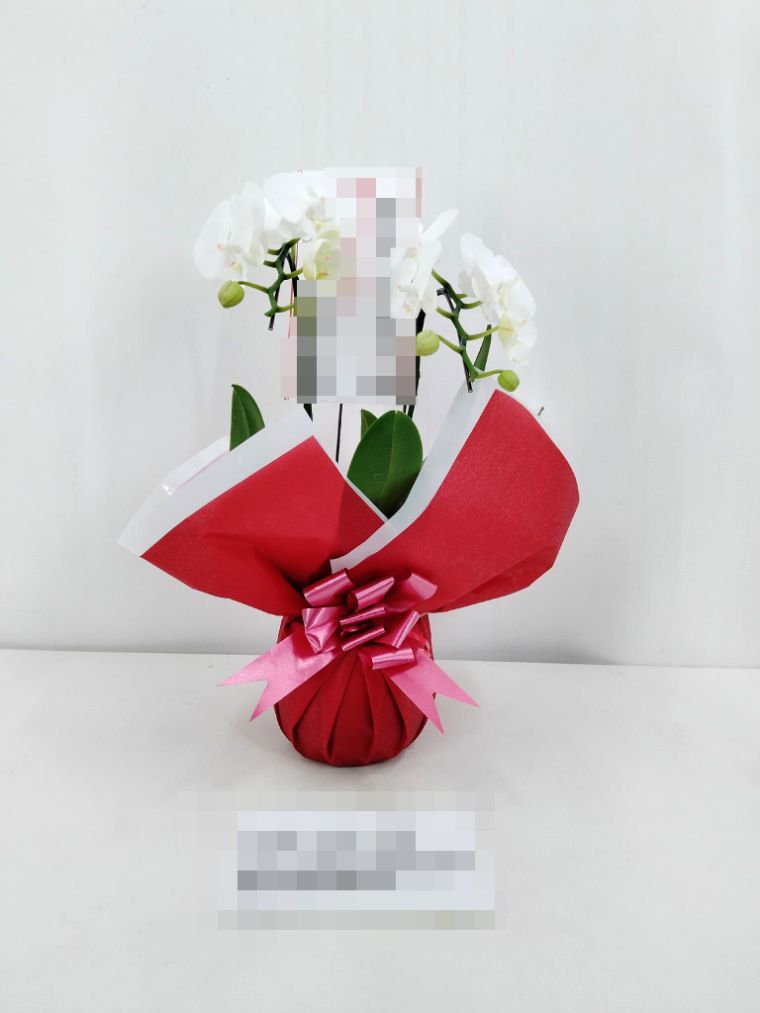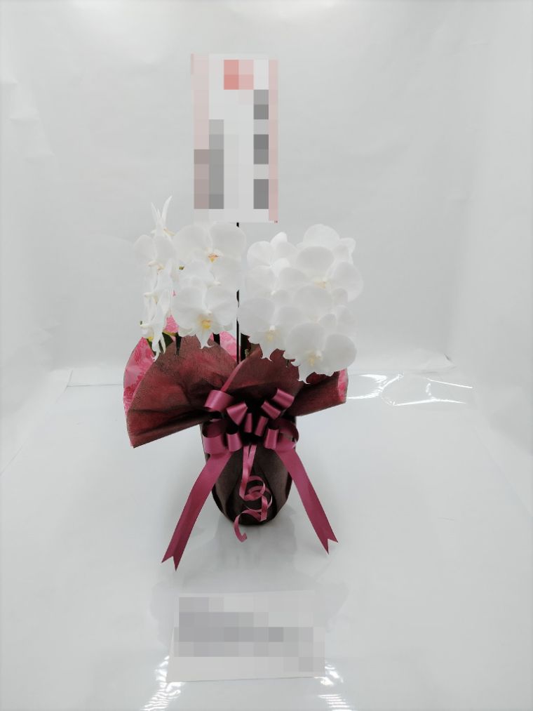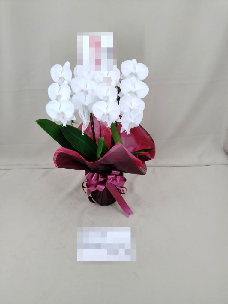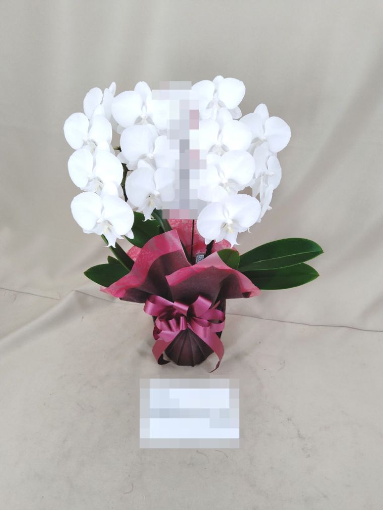 胡蝶蘭の実際にお届けした写真です。花秘書では発送前に写真をメールで送信致しますので安心して大切な顧客や取引様へのギフトにご利用頂けます。