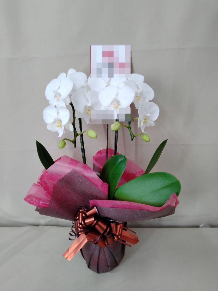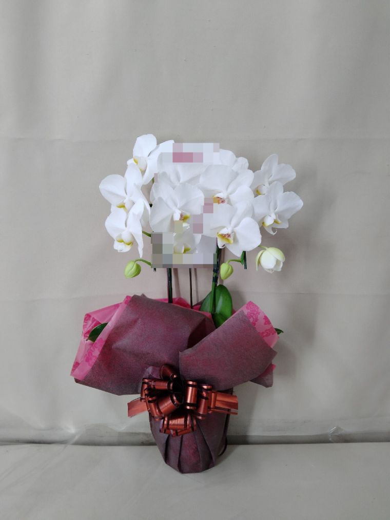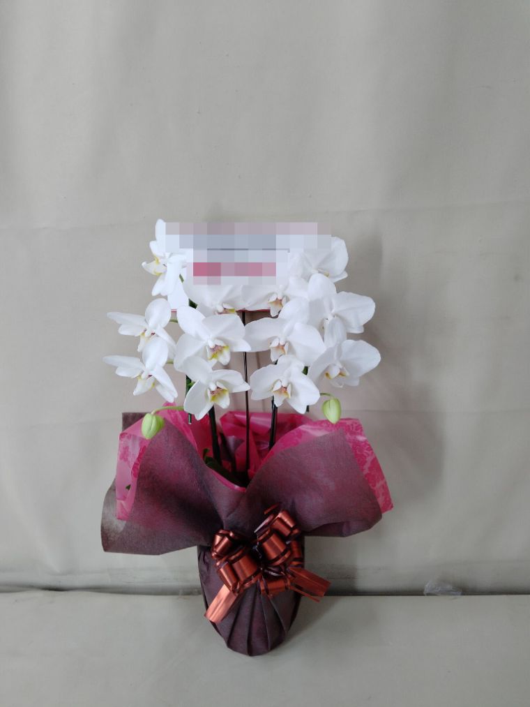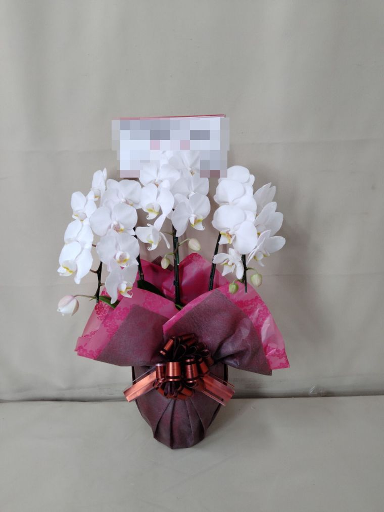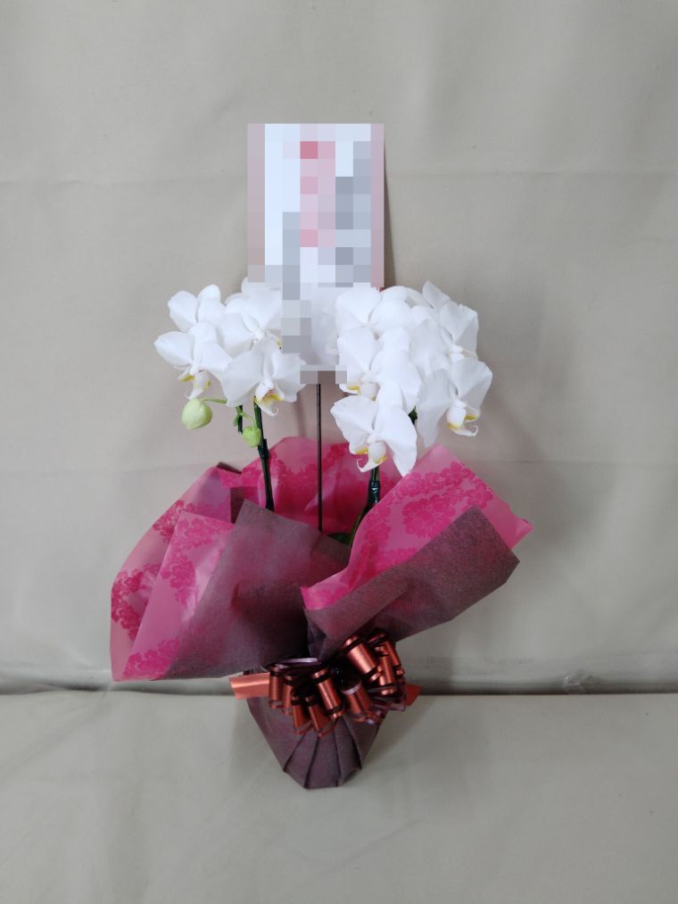 胡蝶蘭の実際にお届けした写真です。花秘書では発送前に写真をメールで送信致しますので安心して大切な顧客や取引様へのギフトにご利用頂けます。