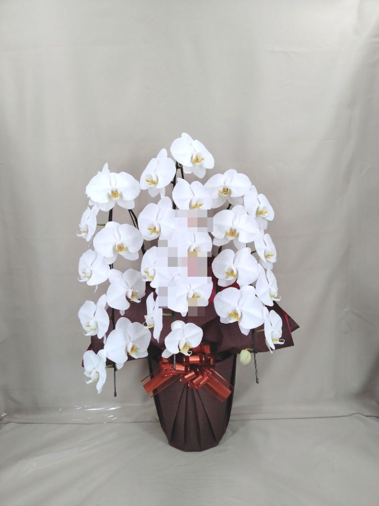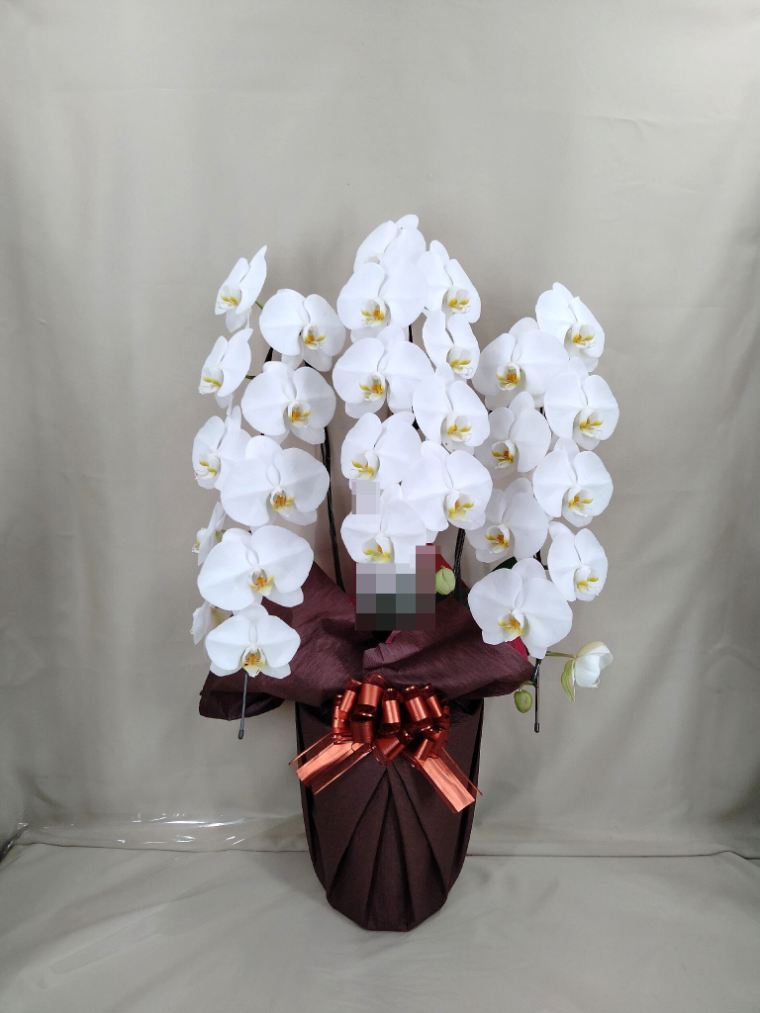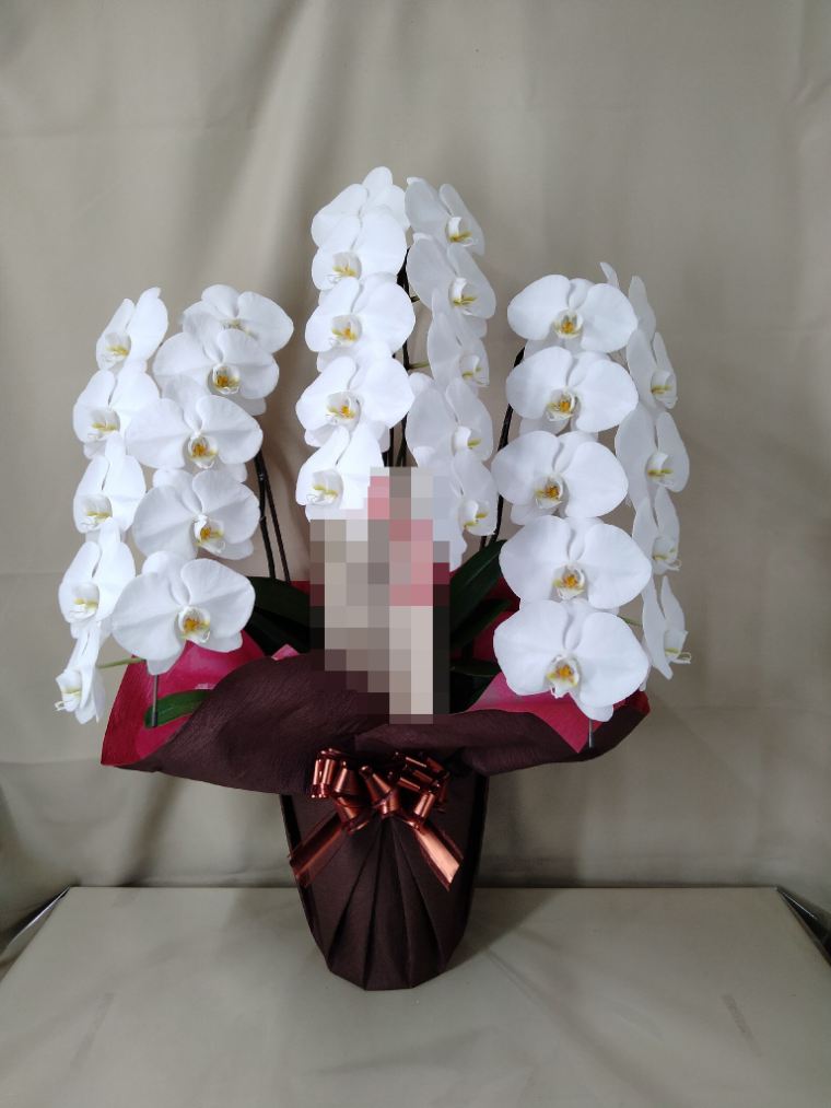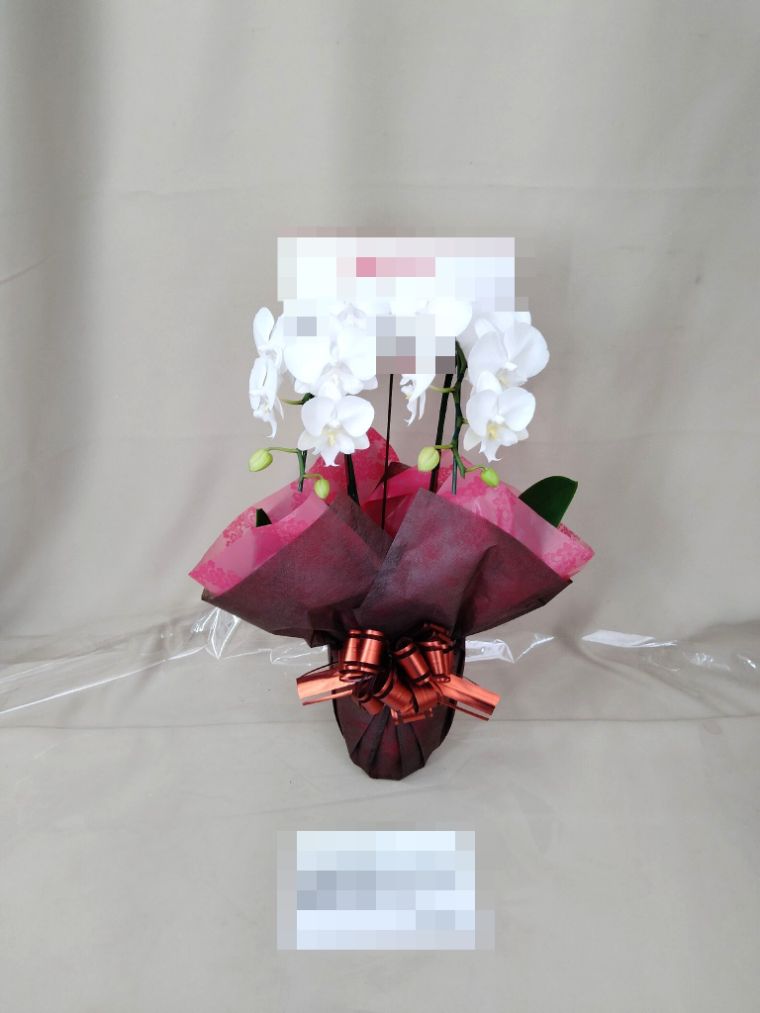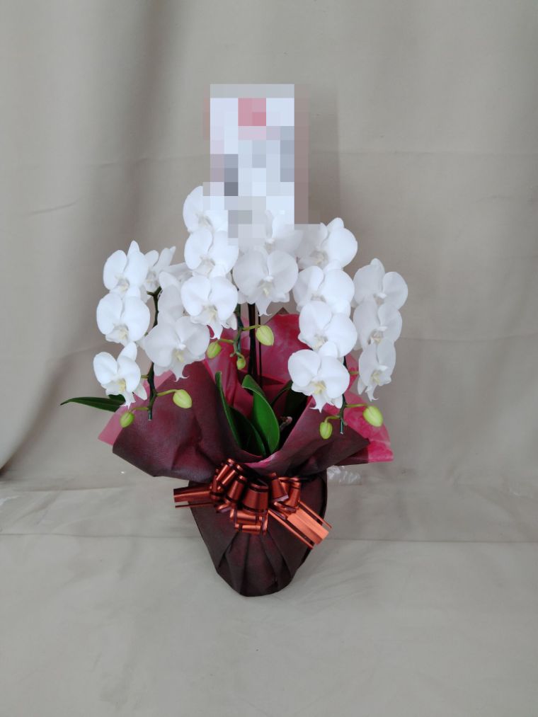 胡蝶蘭の実際にお届けした写真です。花秘書では発送前に写真をメールで送信致しますので安心して大切な顧客や取引様へのギフトにご利用頂けます。