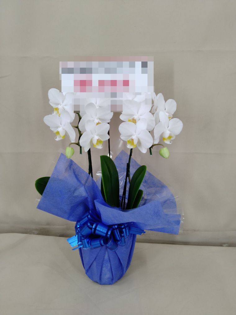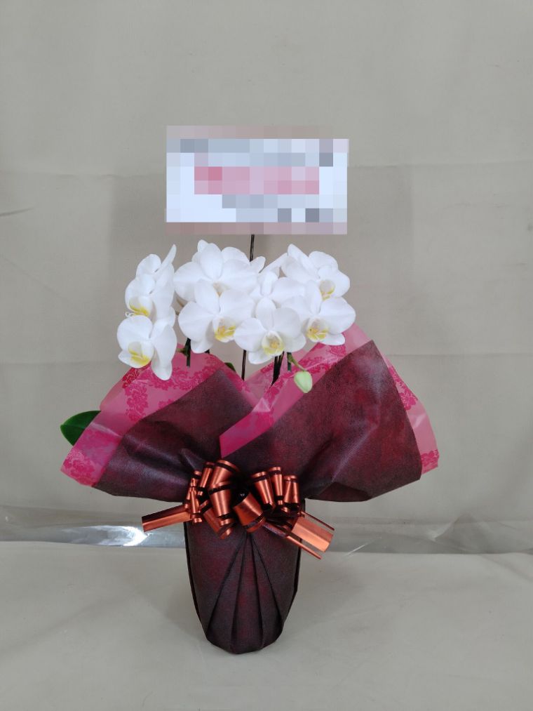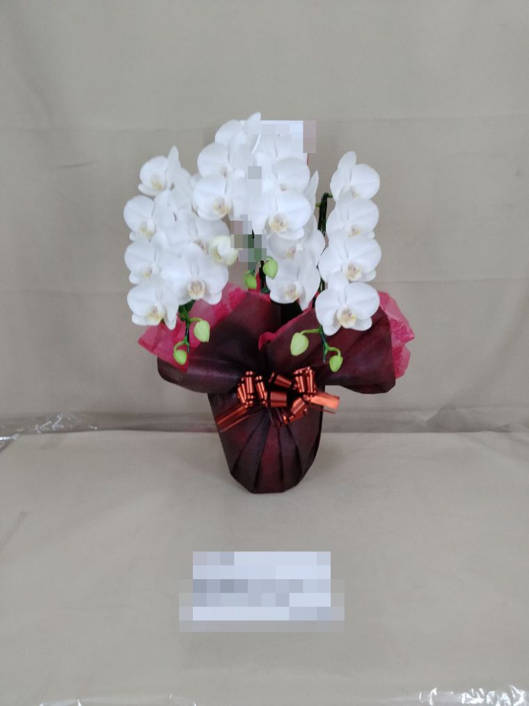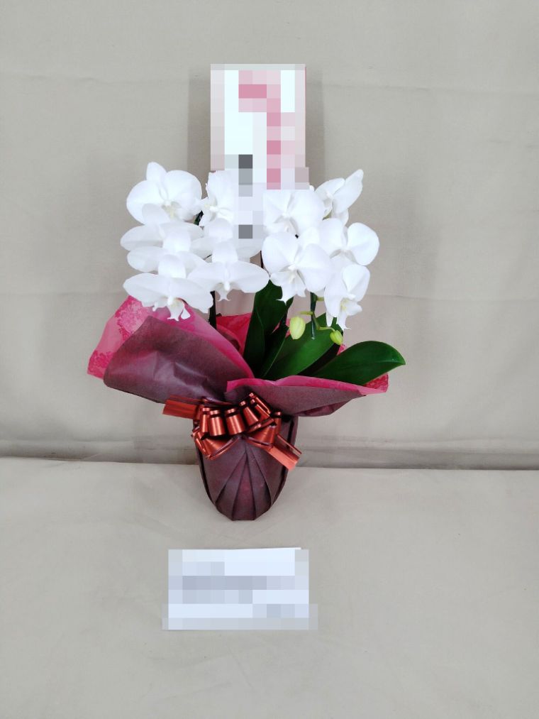 胡蝶蘭の実際にお届けした写真です。花秘書では発送前に写真をメールで送信致しますので安心して大切な顧客や取引様へのギフトにご利用頂けます。