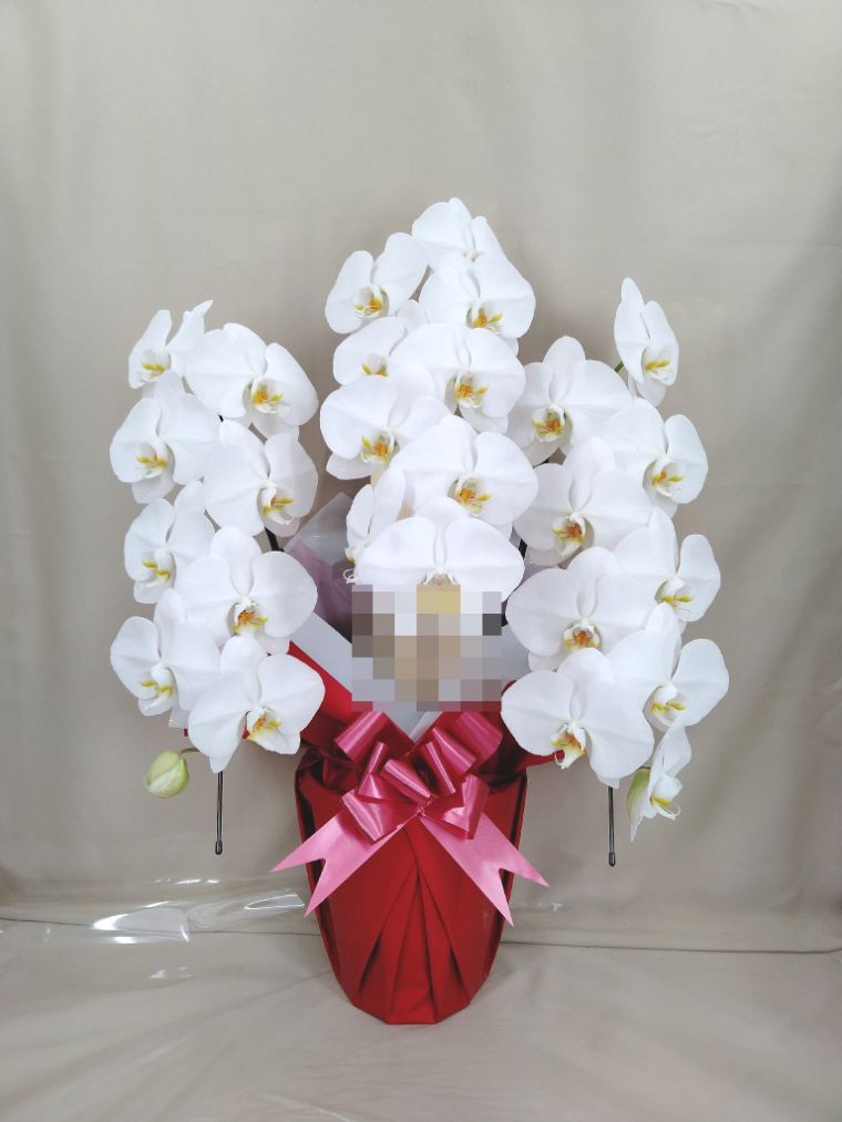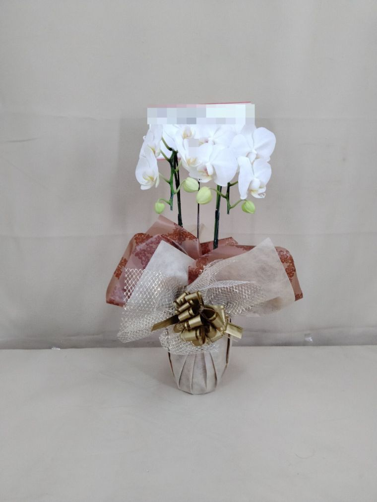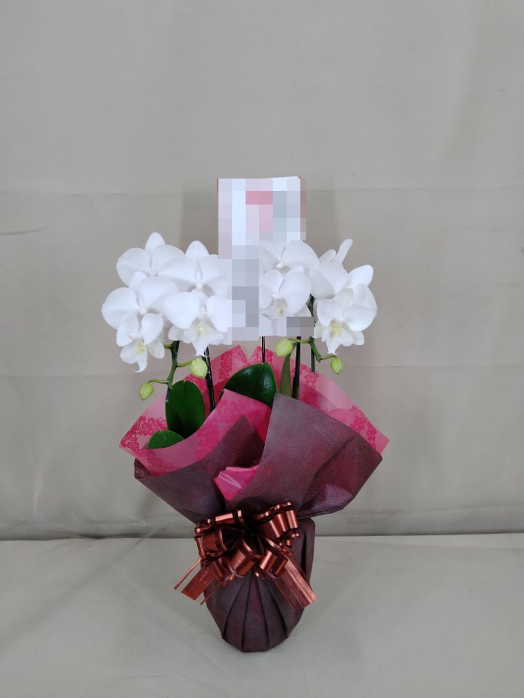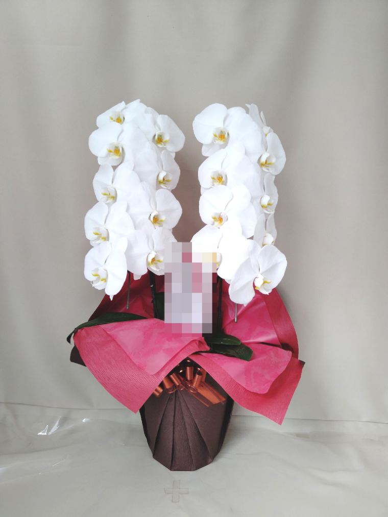 胡蝶蘭の実際にお届けした写真です。花秘書では発送前に写真をメールで送信致しますので安心して大切な顧客や取引様へのギフトにご利用頂けます。