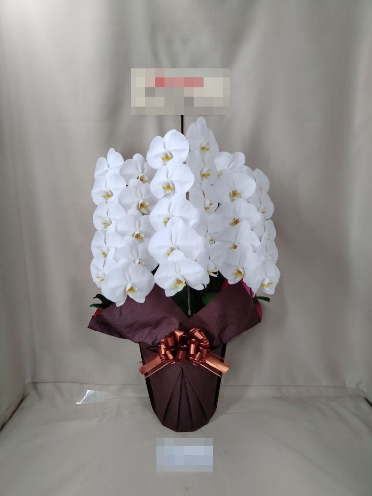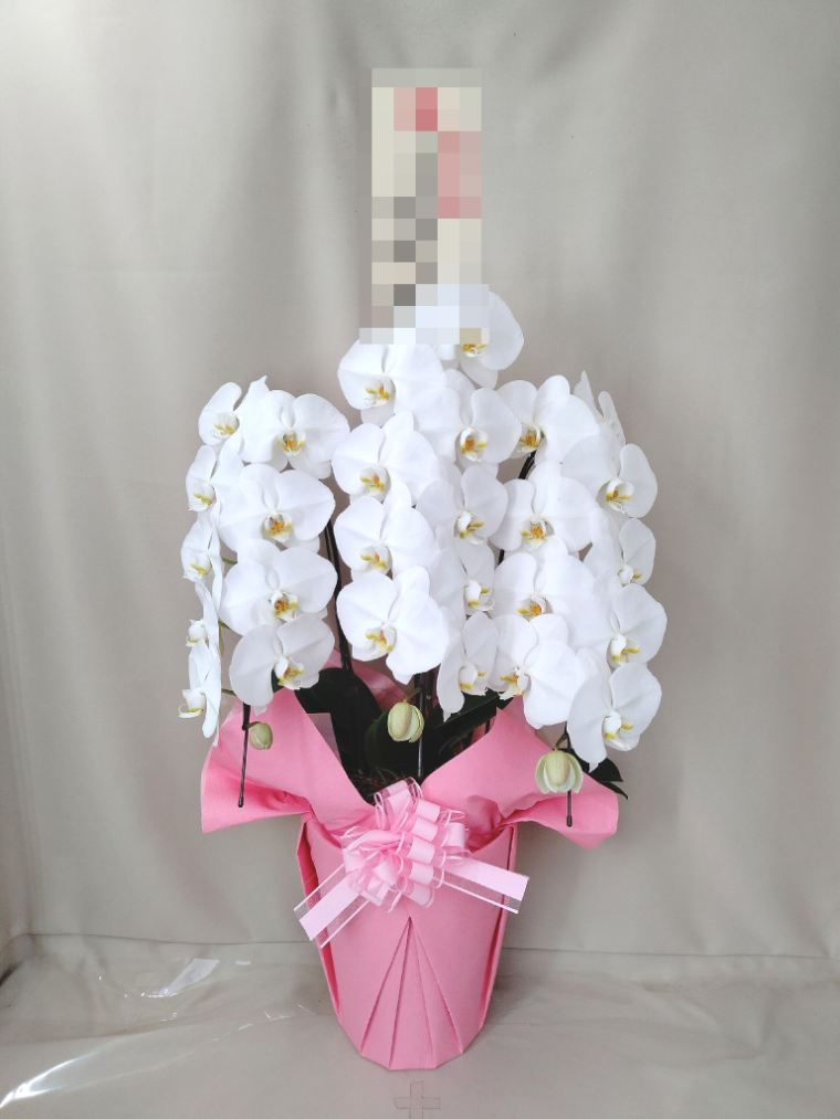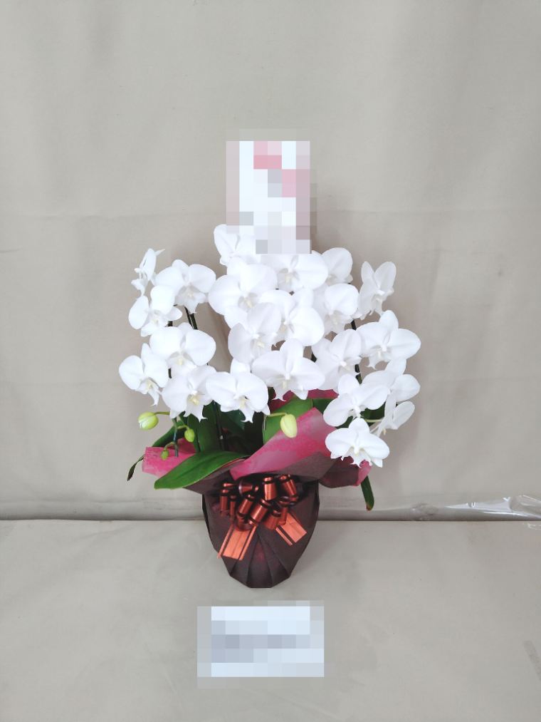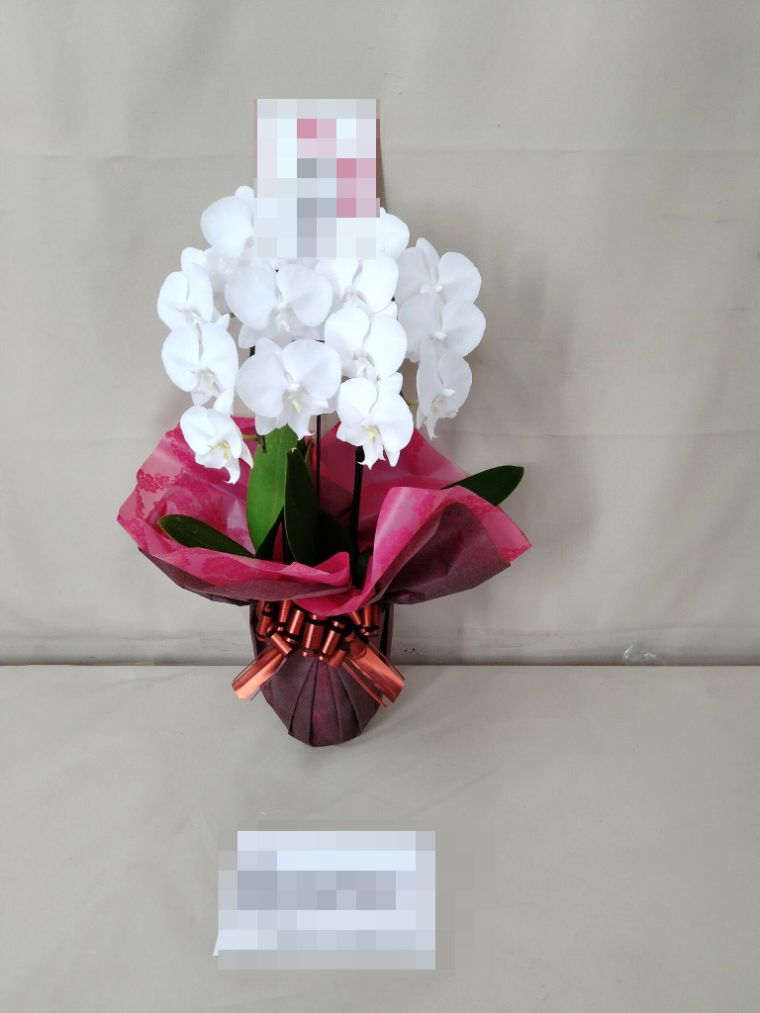 胡蝶蘭の実際にお届けした写真です。花秘書では発送前に写真をメールで送信致しますので安心して大切な顧客や取引様へのギフトにご利用頂けます。