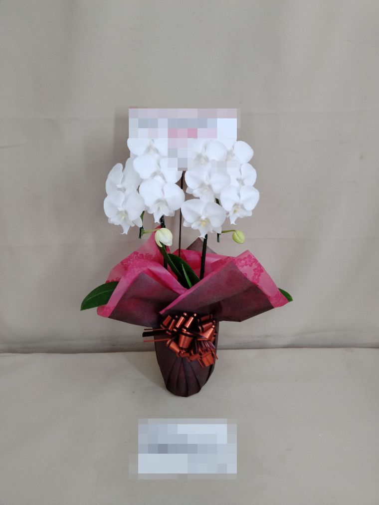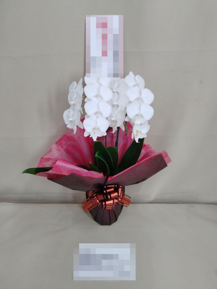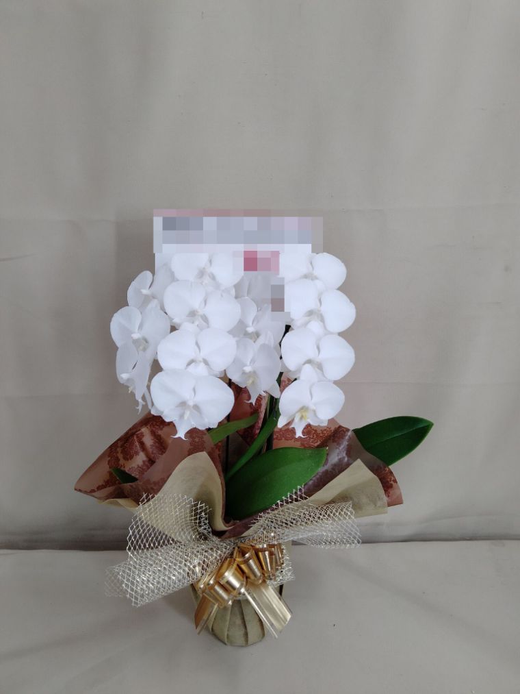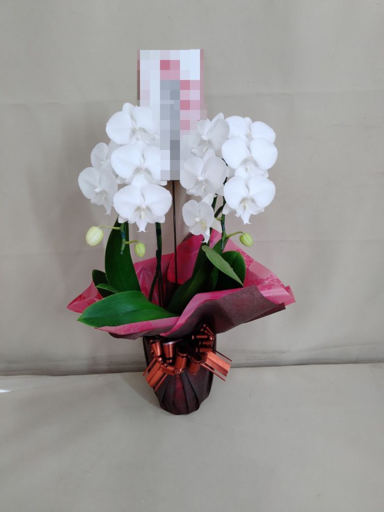 胡蝶蘭の実際にお届けした写真です。花秘書では発送前に写真をメールで送信致しますので安心して大切な顧客や取引様へのギフトにご利用頂けます。