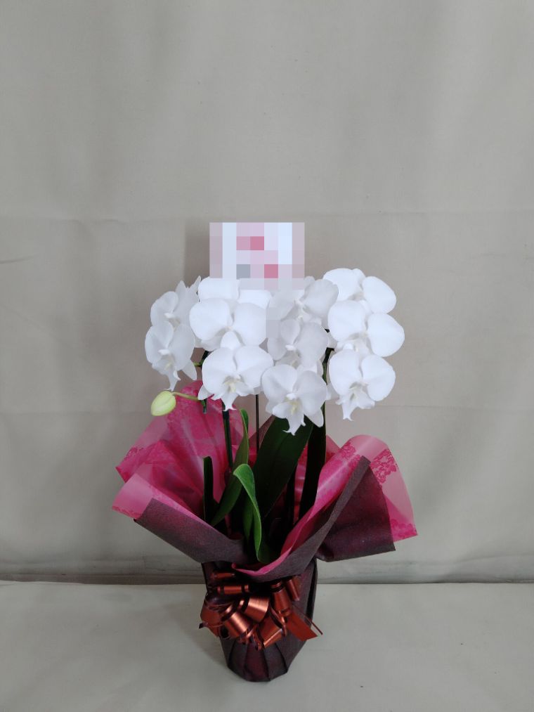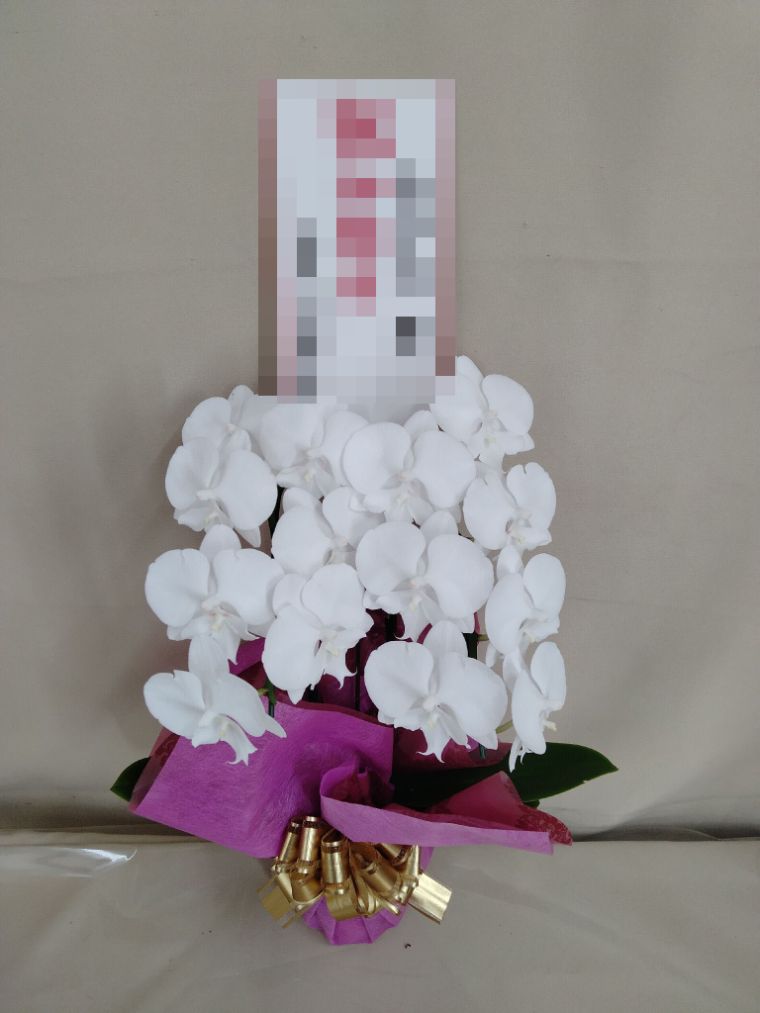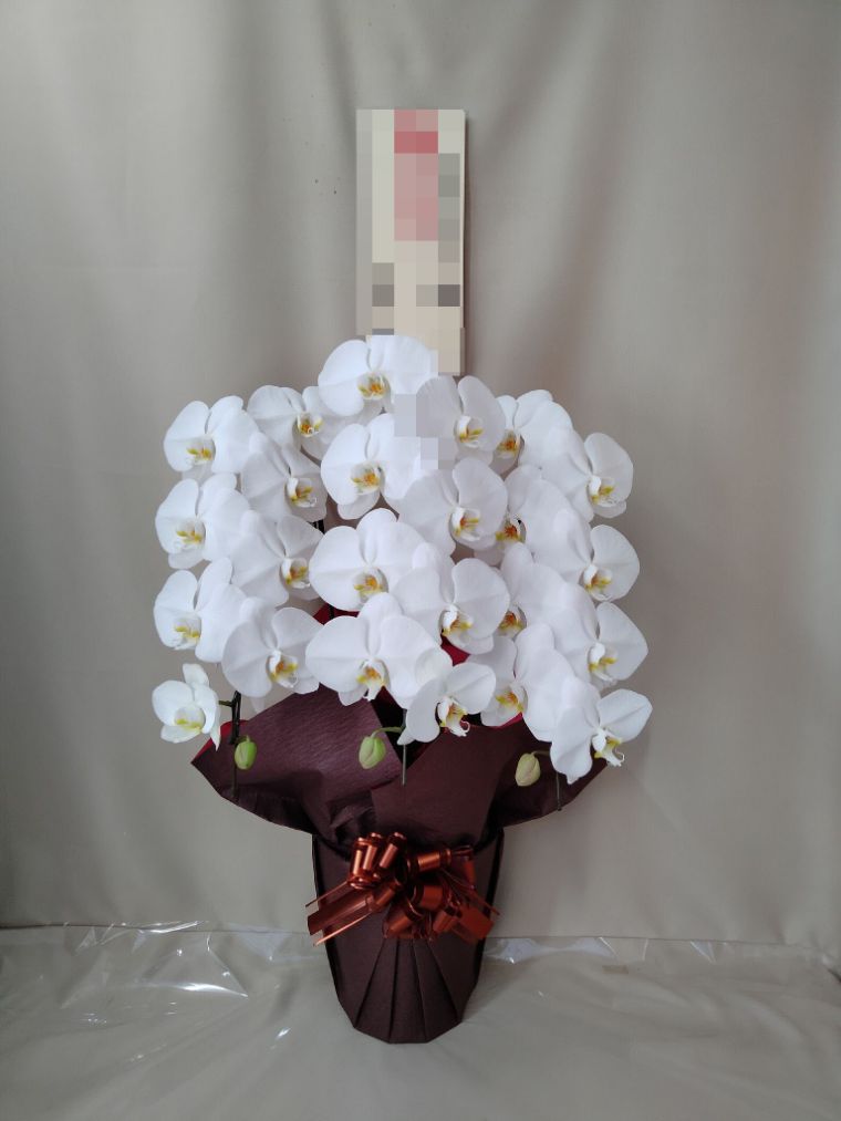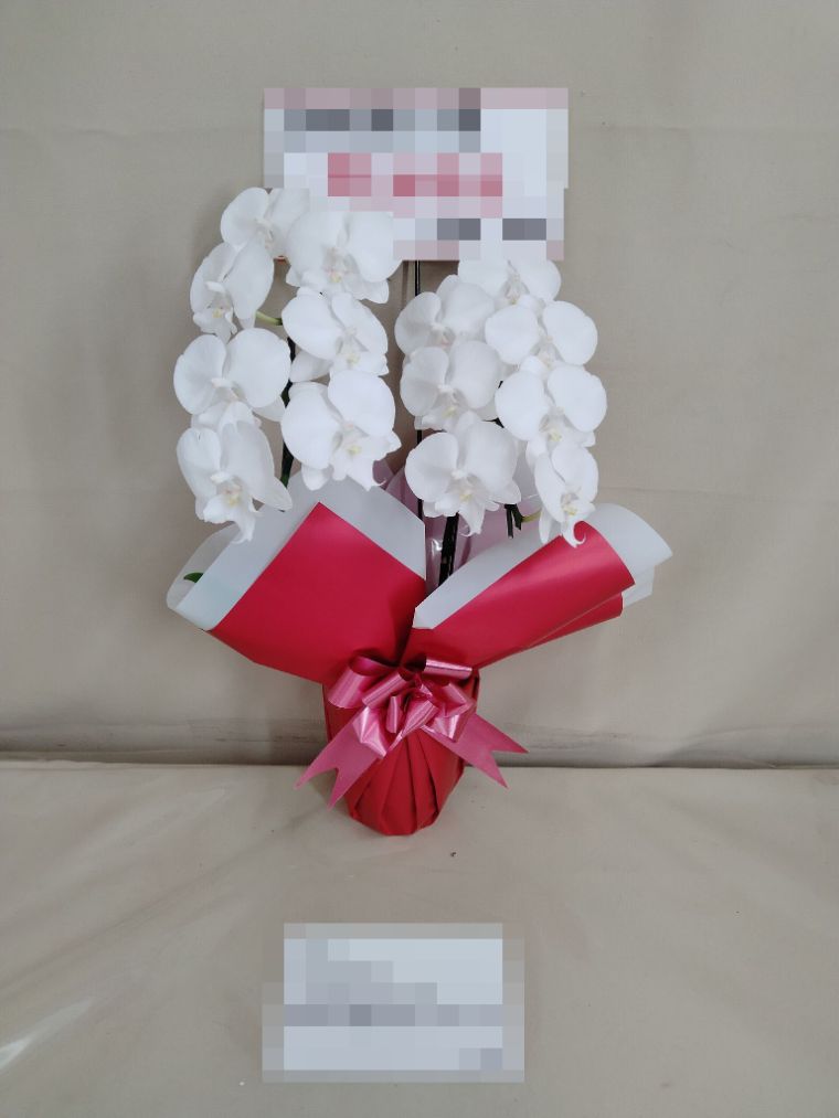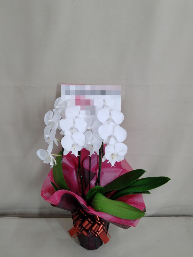 胡蝶蘭の実際にお届けした写真です。花秘書では発送前に写真をメールで送信致しますので安心して大切な顧客や取引様へのギフトにご利用頂けます。