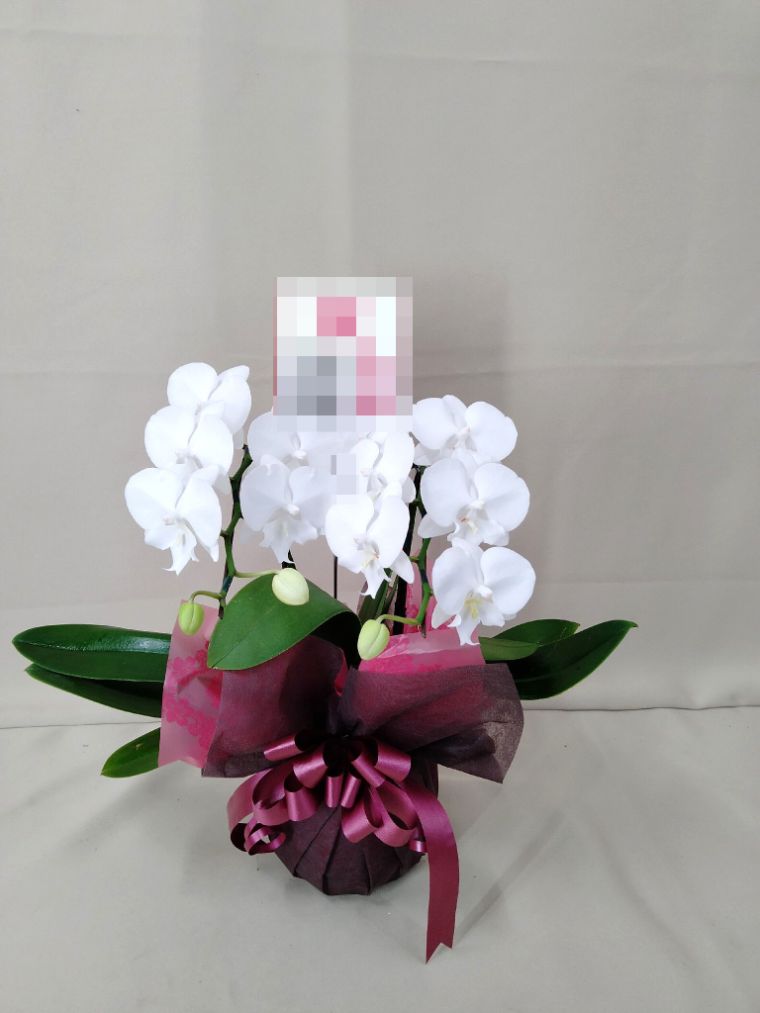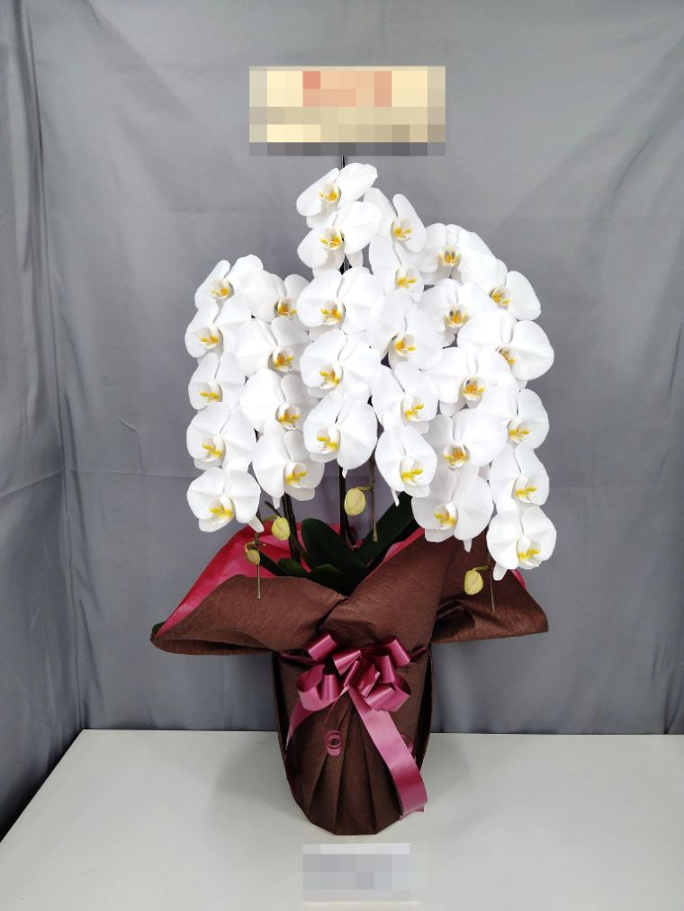胡蝶蘭の実際にお届けした写真です。花秘書では発送前に写真をメールで送信致しますので安心して大切な顧客や取引様へのギフトにご利用頂けます。