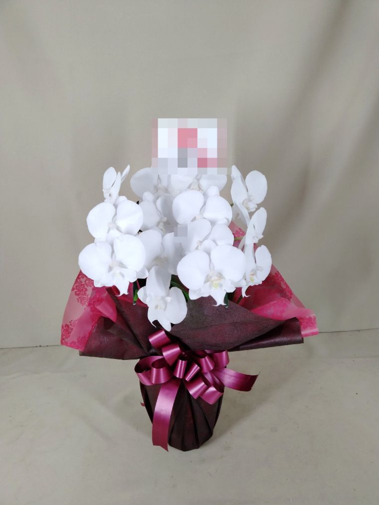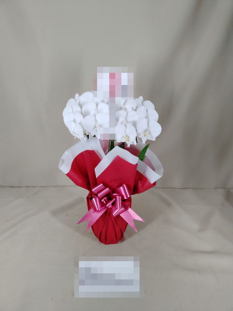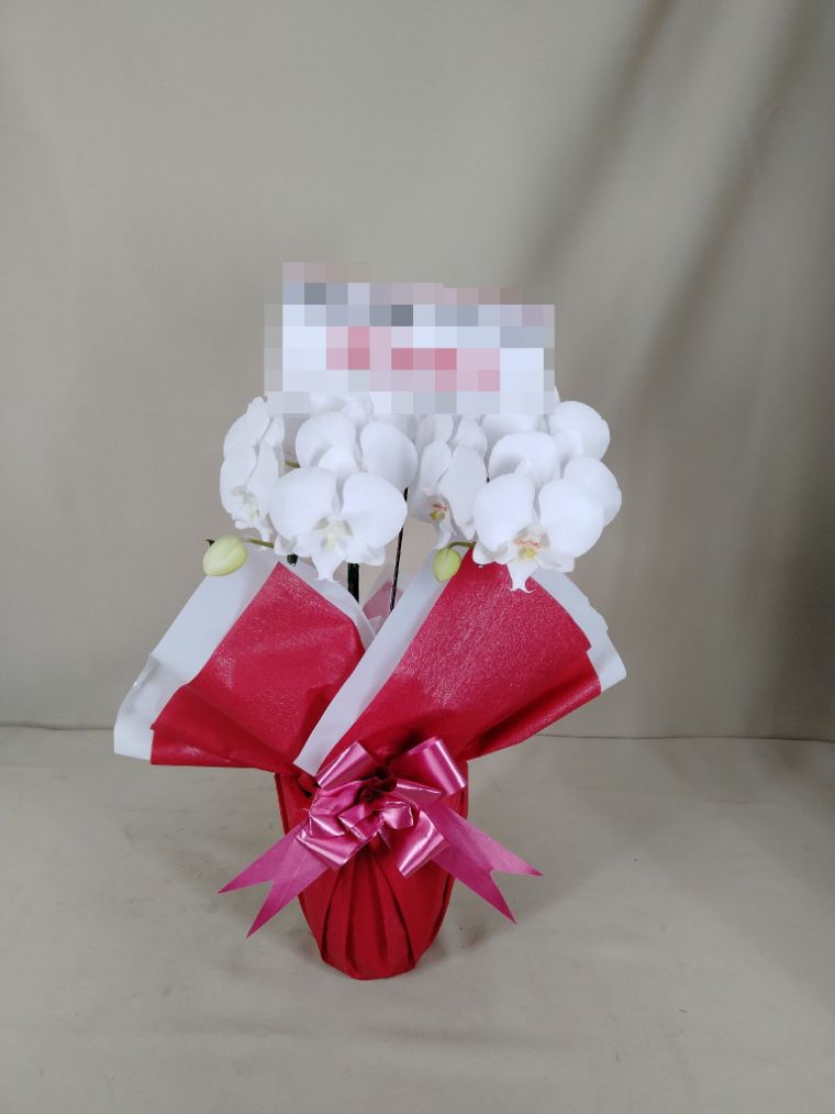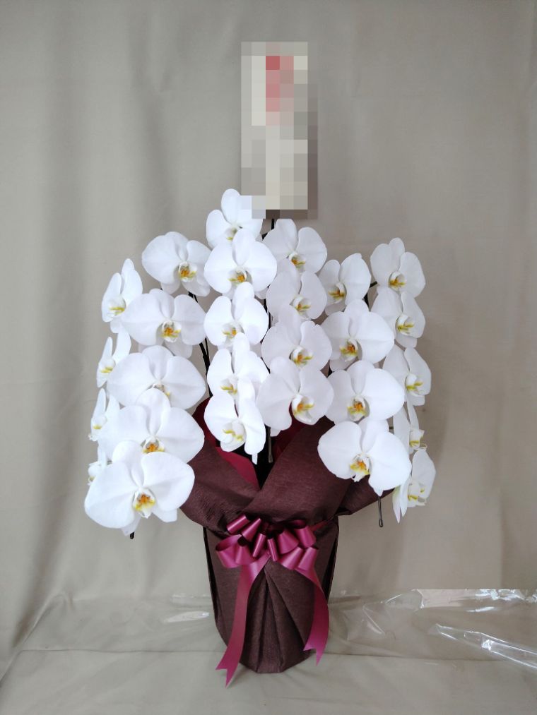 胡蝶蘭の実際にお届けした写真です。花秘書では発送前に写真をメールで送信致しますので安心して大切な顧客や取引様へのギフトにご利用頂けます。