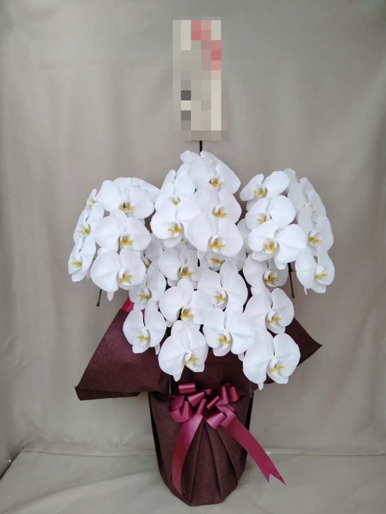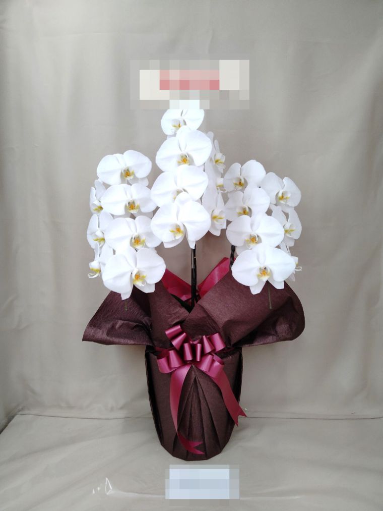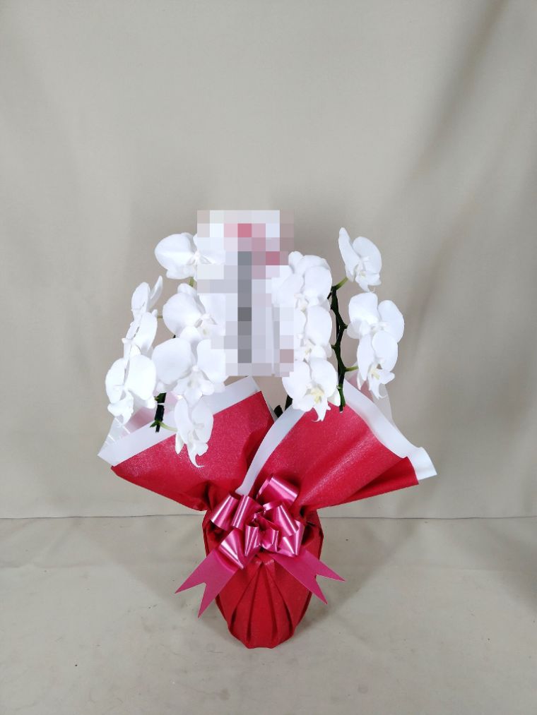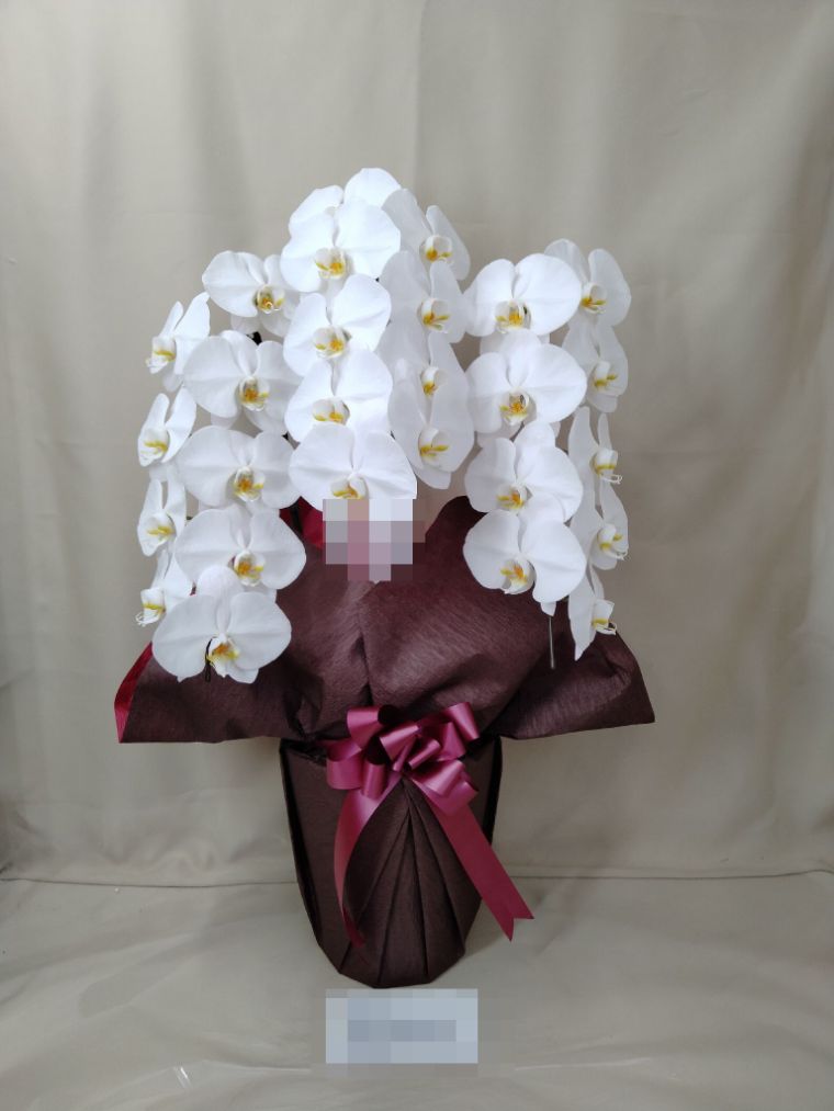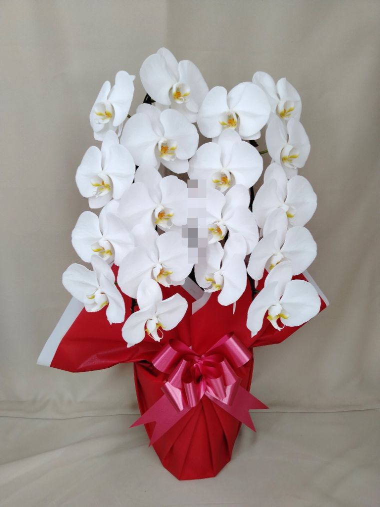 胡蝶蘭の実際にお届けした写真です。花秘書では発送前に写真をメールで送信致しますので安心して大切な顧客や取引様へのギフトにご利用頂けます。