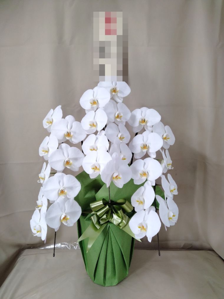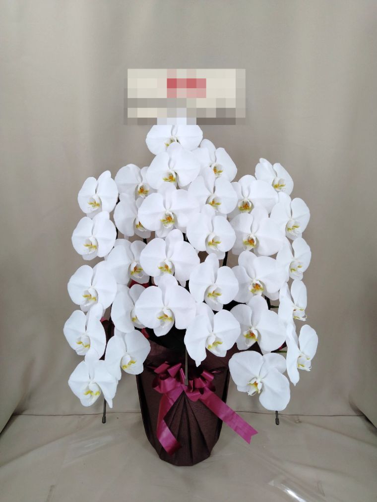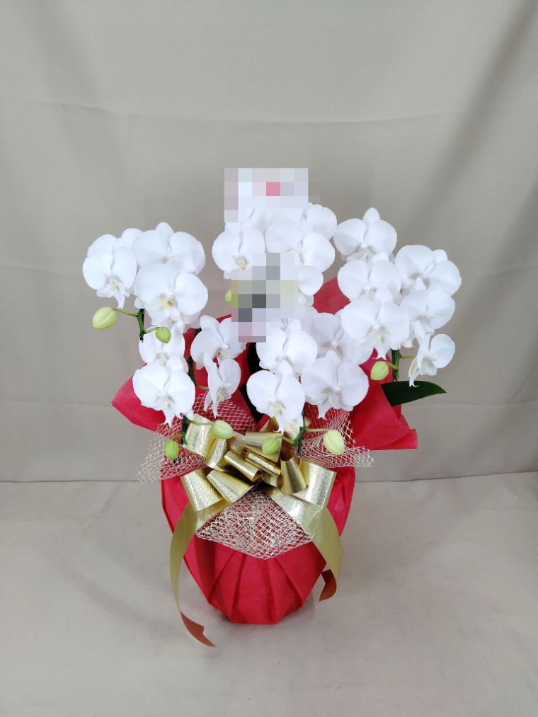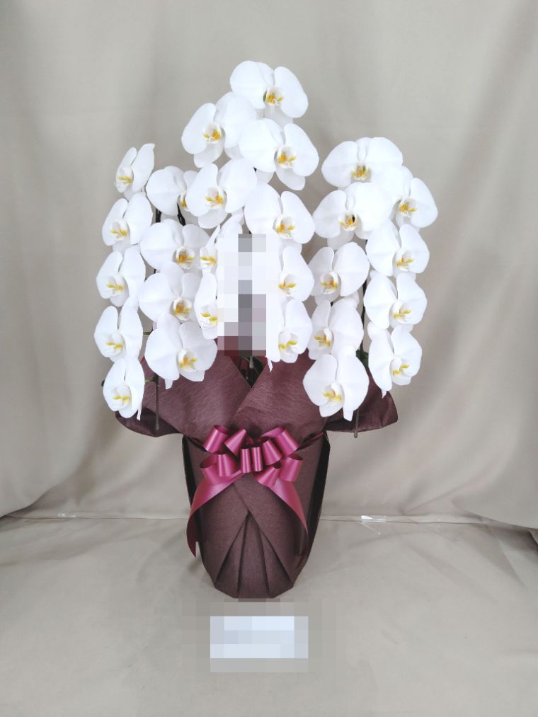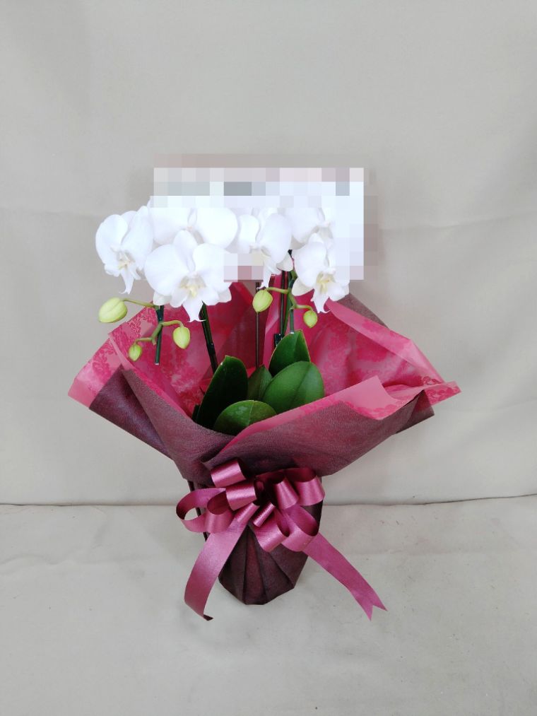 胡蝶蘭の実際にお届けした写真です。花秘書では発送前に写真をメールで送信致しますので安心して大切な顧客や取引様へのギフトにご利用頂けます。