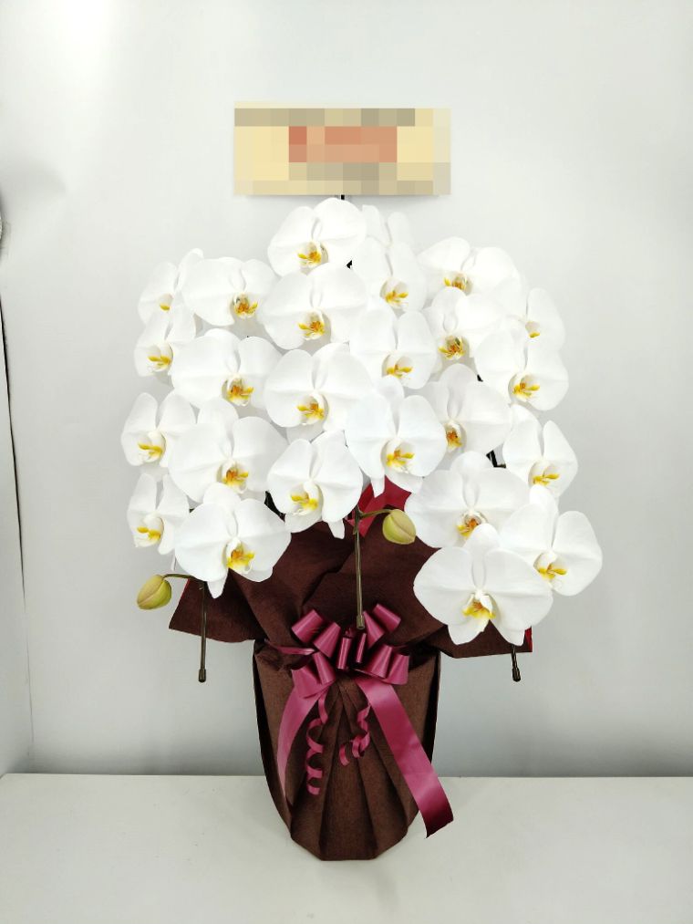 胡蝶蘭の実際にお届けした写真です。花秘書では発送前に写真をメールで送信致しますので安心して大切な顧客や取引様へのギフトにご利用頂けます。