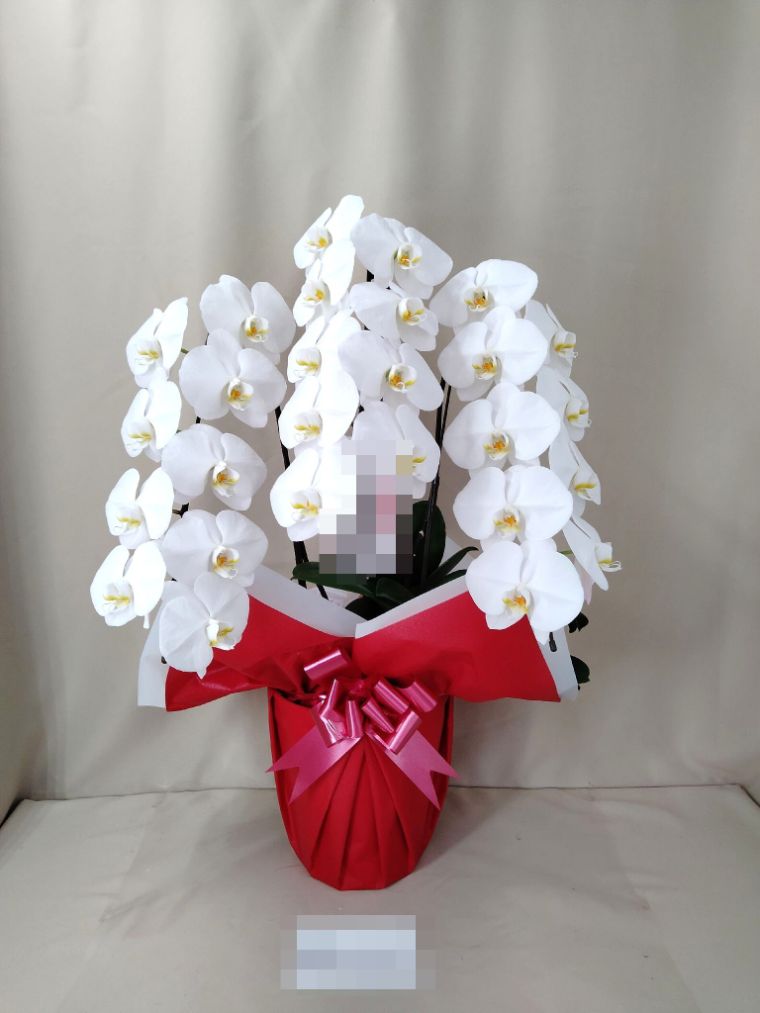 胡蝶蘭の実際にお届けした写真です。花秘書では発送前に写真をメールで送信致しますので安心して大切な顧客や取引様へのギフトにご利用頂けます。