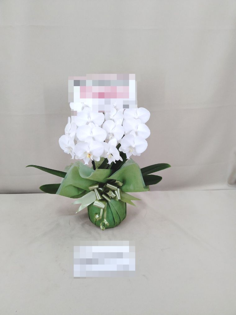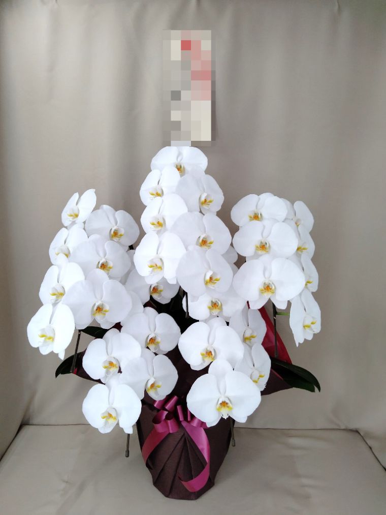 胡蝶蘭の実際にお届けした写真です。花秘書では発送前に写真をメールで送信致しますので安心して大切な顧客や取引様へのギフトにご利用頂けます。