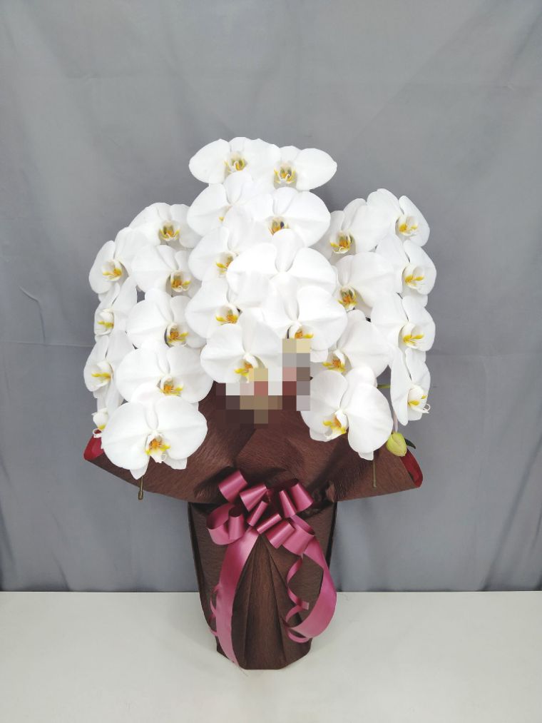 胡蝶蘭の実際にお届けした写真です。花秘書では発送前に写真をメールで送信致しますので安心して大切な顧客や取引様へのギフトにご利用頂けます。