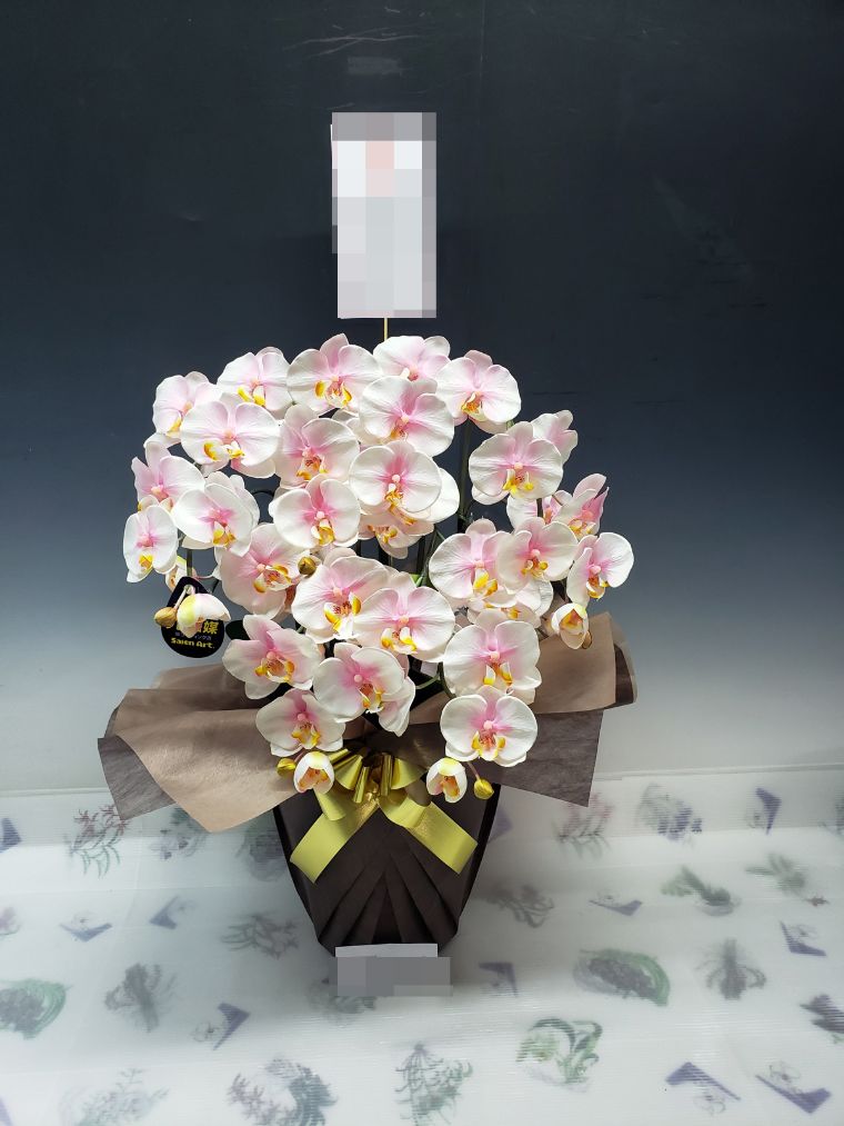 胡蝶蘭の実際にお届けした写真です。花秘書では発送前に写真をメールで送信致しますので安心して大切な顧客や取引様へのギフトにご利用頂けます。