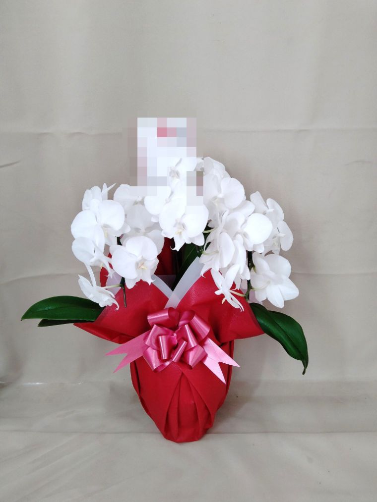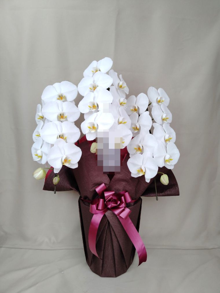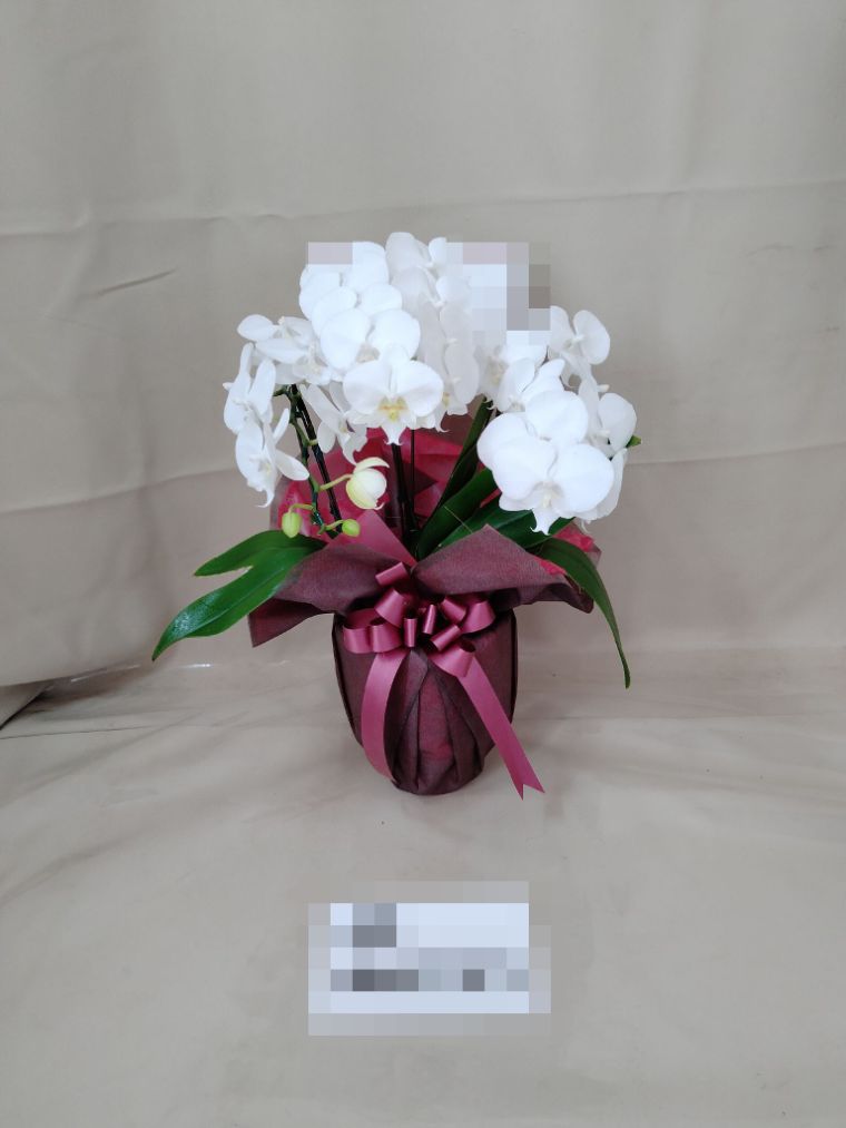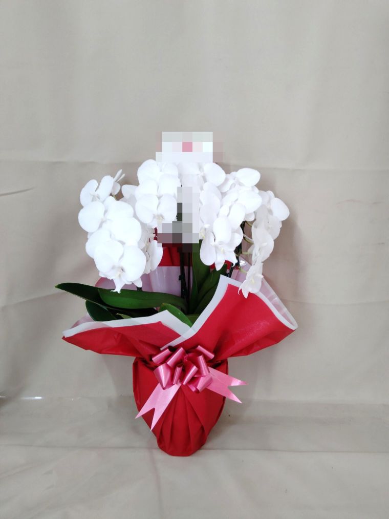 胡蝶蘭の実際にお届けした写真です。花秘書では発送前に写真をメールで送信致しますので安心して大切な顧客や取引様へのギフトにご利用頂けます。