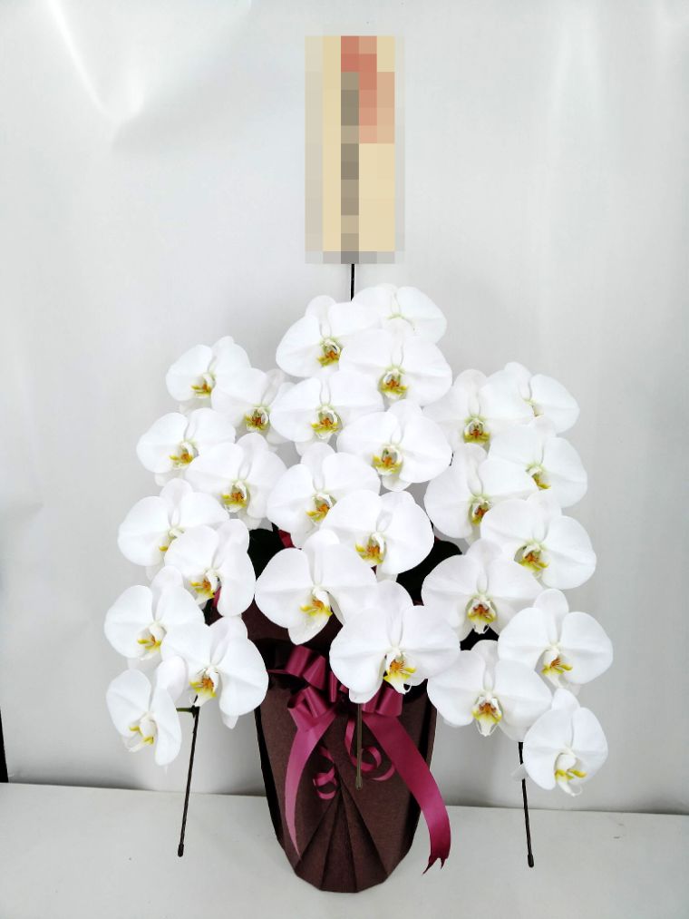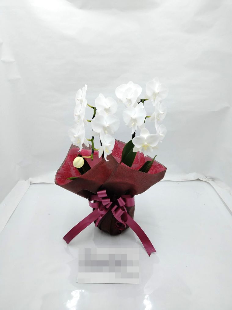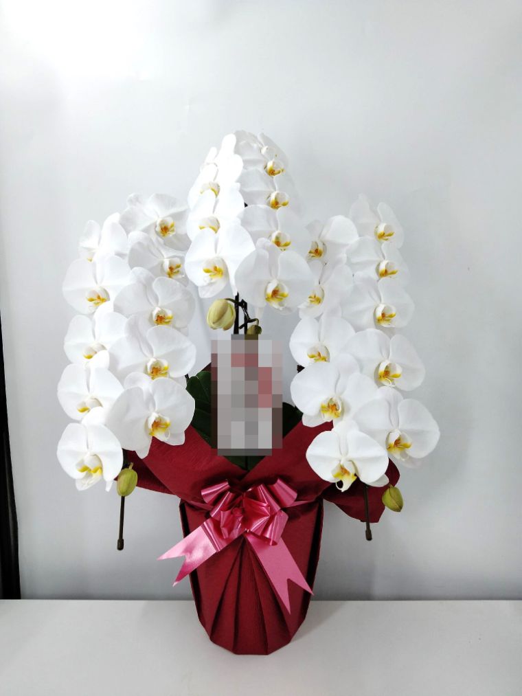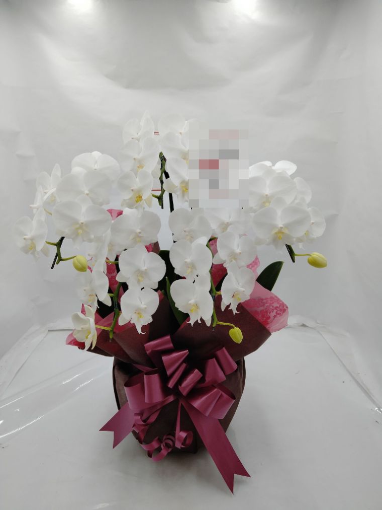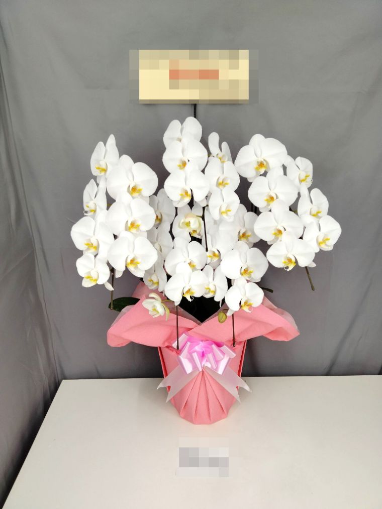 胡蝶蘭の実際にお届けした写真です。花秘書では発送前に写真をメールで送信致しますので安心して大切な顧客や取引様へのギフトにご利用頂けます。