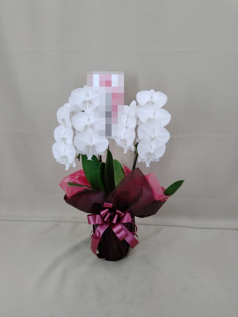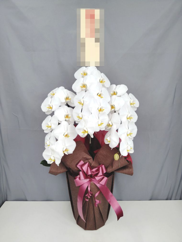 胡蝶蘭の実際にお届けした写真です。花秘書では発送前に写真をメールで送信致しますので安心して大切な顧客や取引様へのギフトにご利用頂けます。