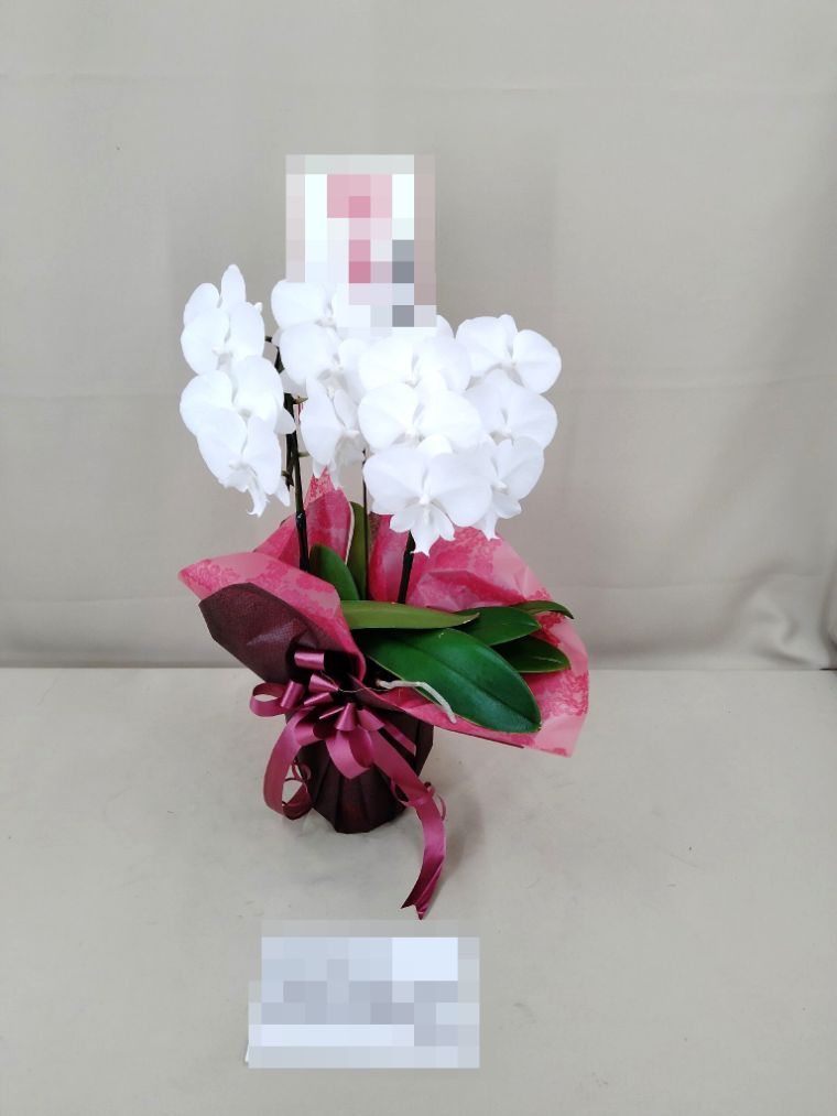 胡蝶蘭の実際にお届けした写真です。花秘書では発送前に写真をメールで送信致しますので安心して大切な顧客や取引様へのギフトにご利用頂けます。