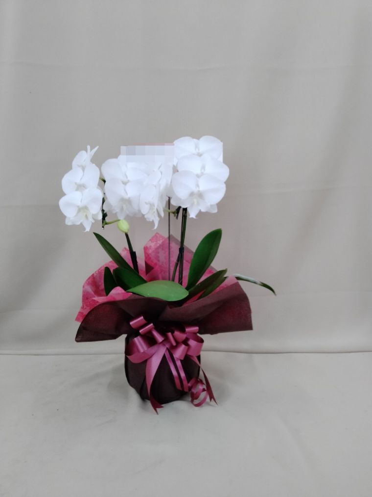 胡蝶蘭の実際にお届けした写真です。花秘書では発送前に写真をメールで送信致しますので安心して大切な顧客や取引様へのギフトにご利用頂けます。