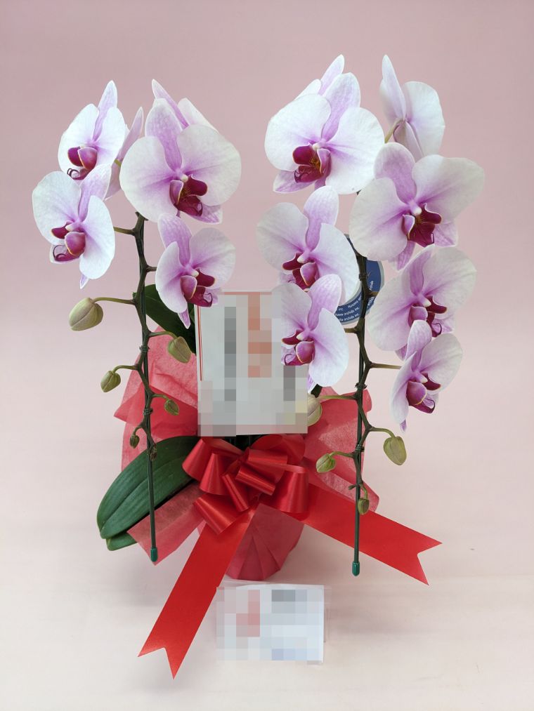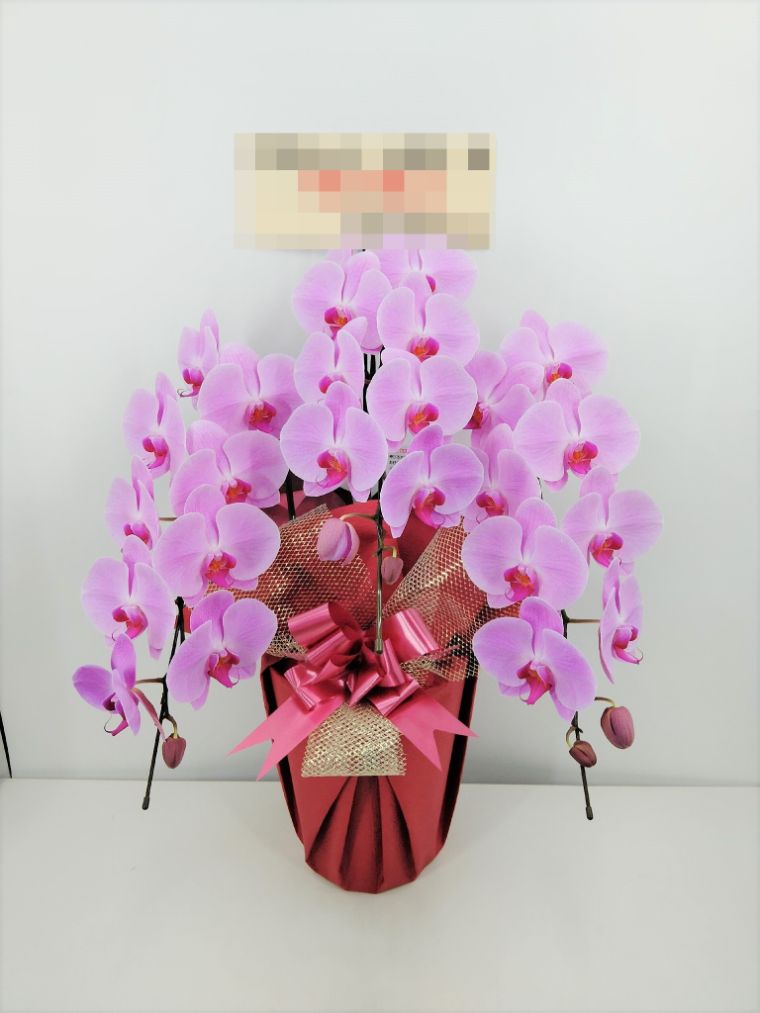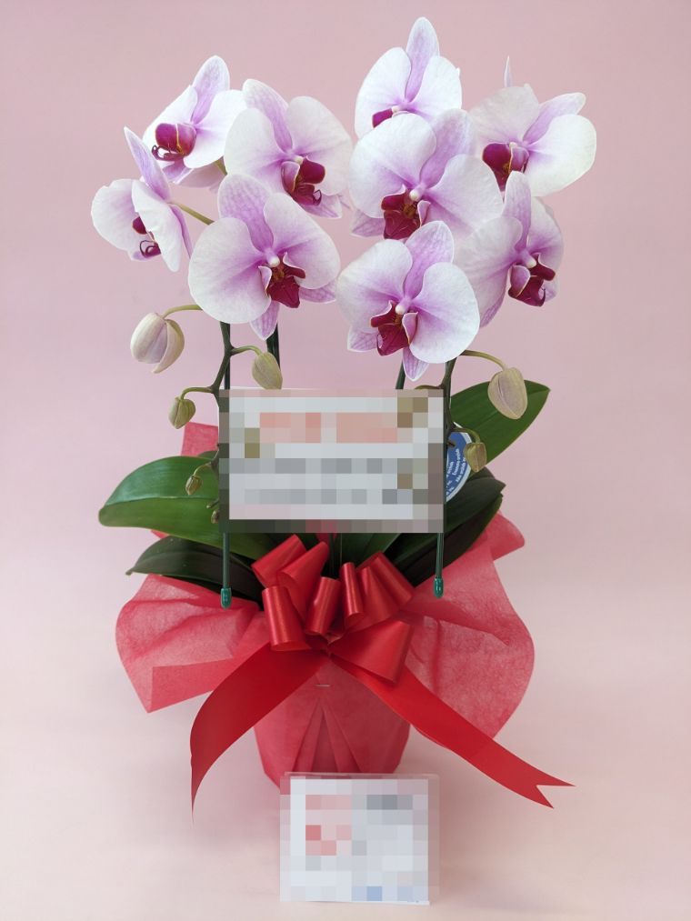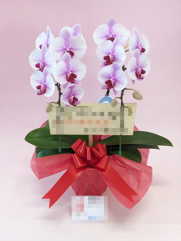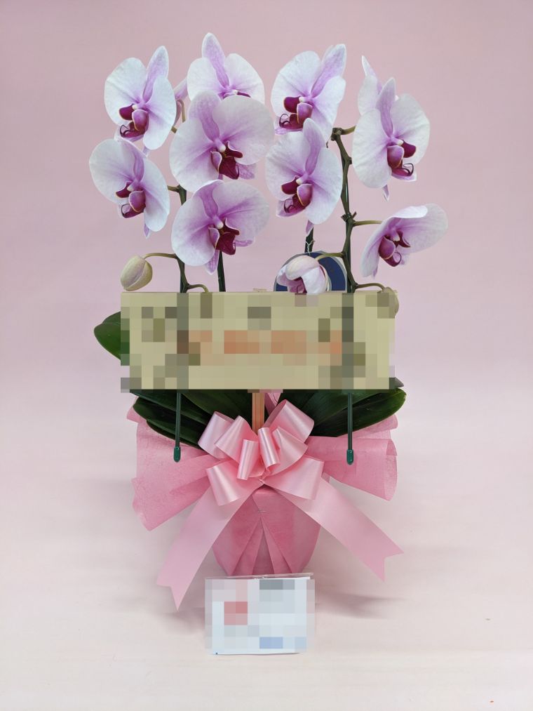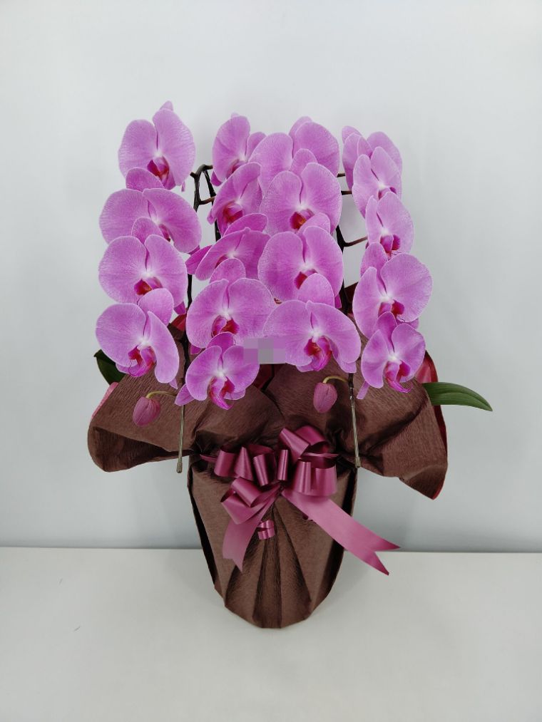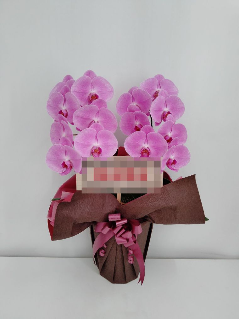 胡蝶蘭の実際にお届けした写真です。花秘書では発送前に写真をメールで送信致しますので安心して大切な顧客や取引様へのギフトにご利用頂けます。