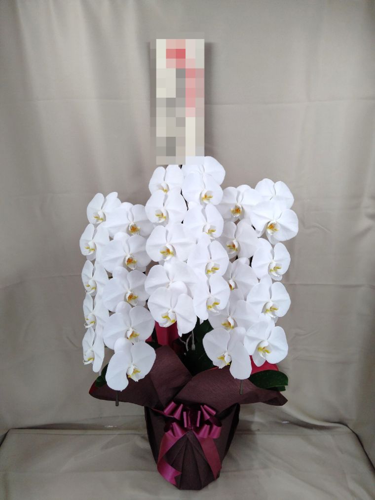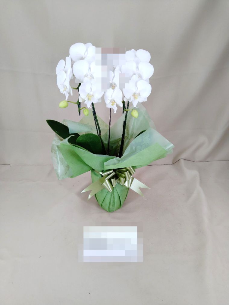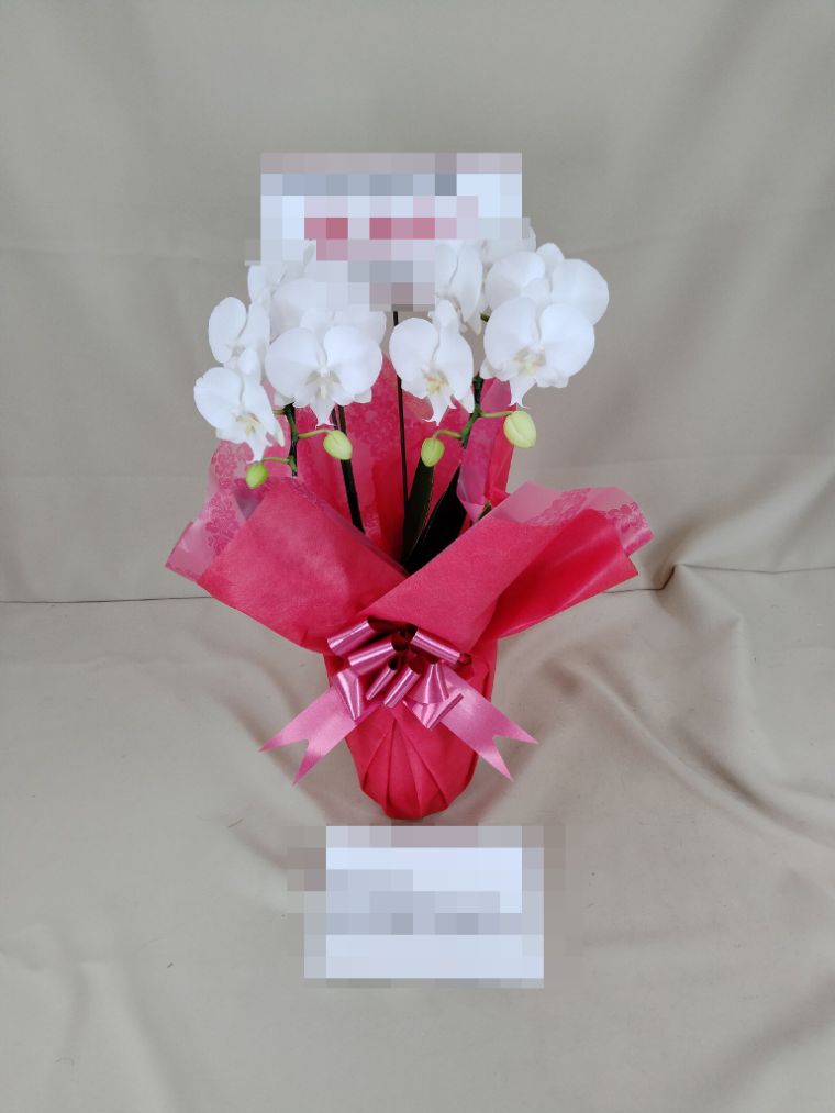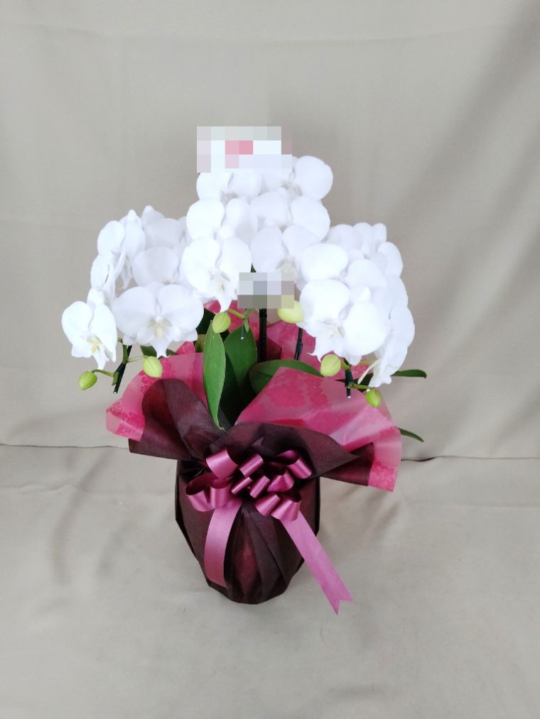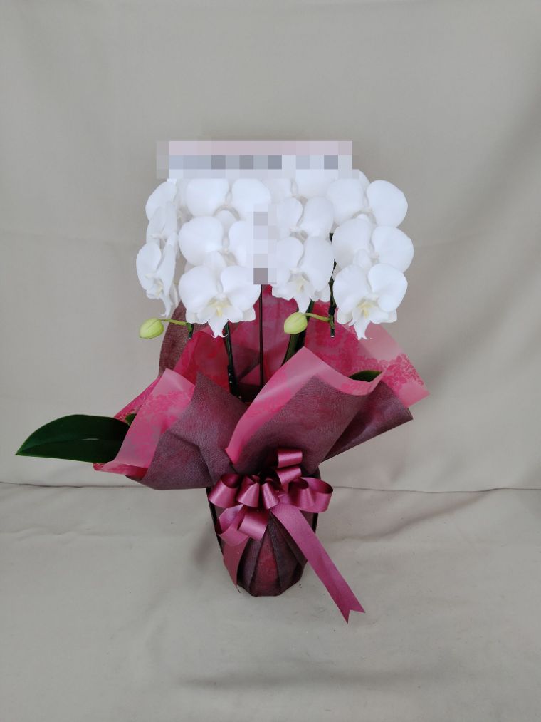 胡蝶蘭の実際にお届けした写真です。花秘書では発送前に写真をメールで送信致しますので安心して大切な顧客や取引様へのギフトにご利用頂けます。