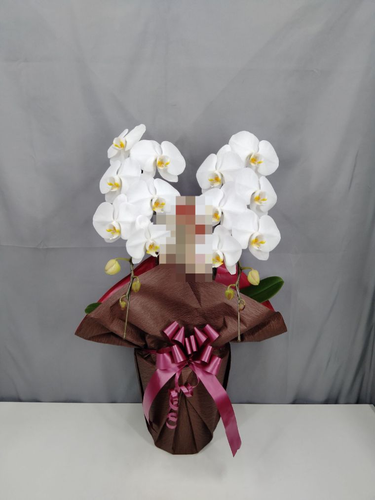 胡蝶蘭の実際にお届けした写真です。花秘書では発送前に写真をメールで送信致しますので安心して大切な顧客や取引様へのギフトにご利用頂けます。