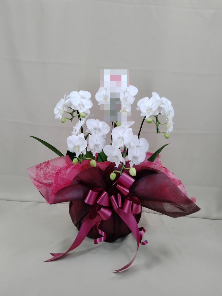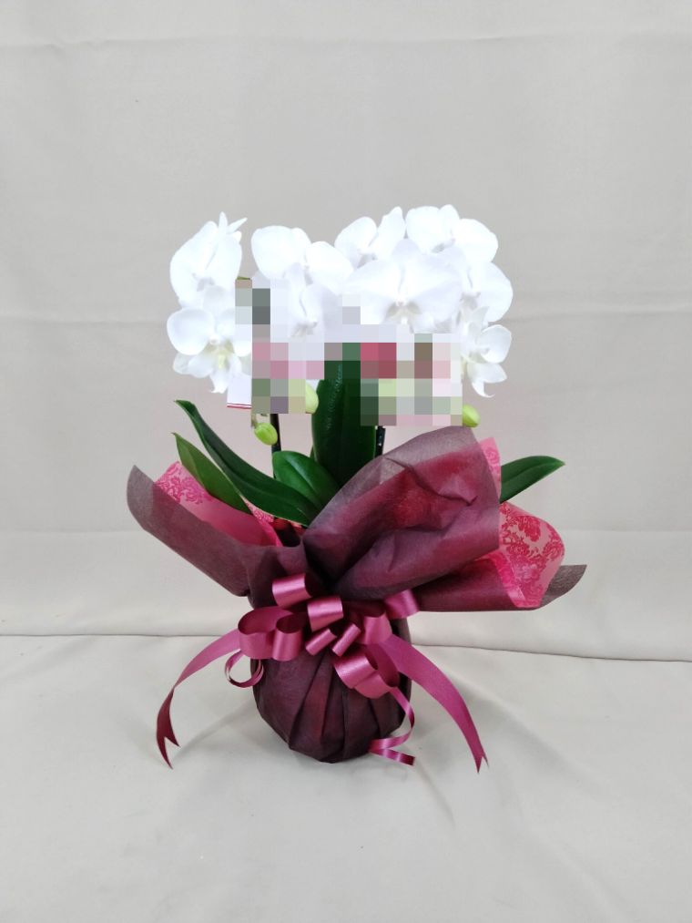 胡蝶蘭の実際にお届けした写真です。花秘書では発送前に写真をメールで送信致しますので安心して大切な顧客や取引様へのギフトにご利用頂けます。