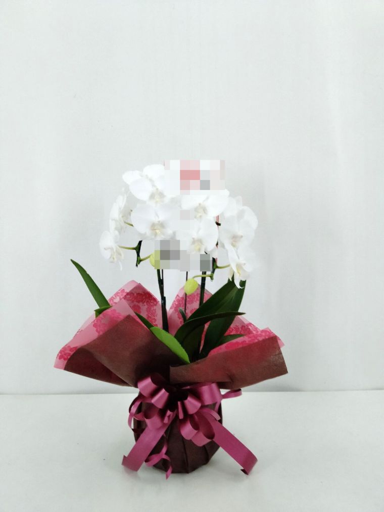 胡蝶蘭の実際にお届けした写真です。花秘書では発送前に写真をメールで送信致しますので安心して大切な顧客や取引様へのギフトにご利用頂けます。