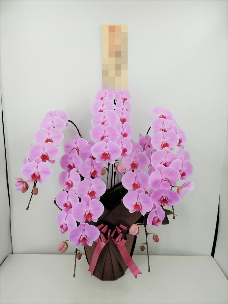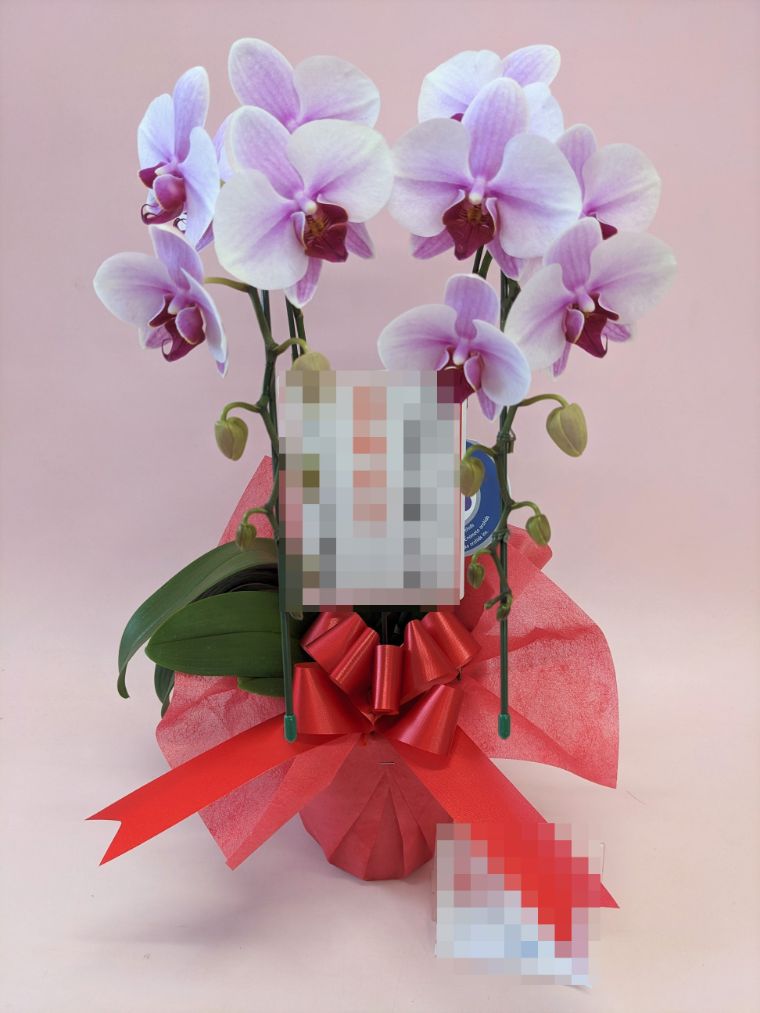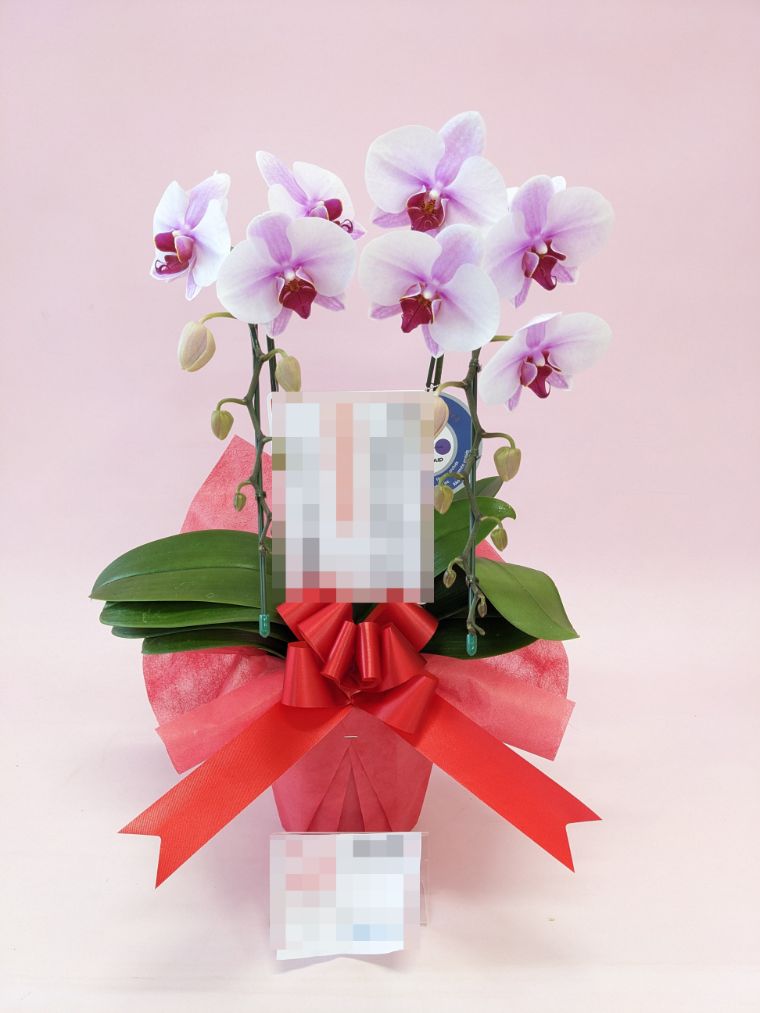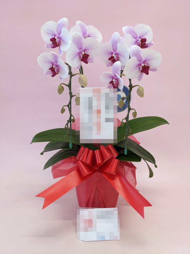 胡蝶蘭の実際にお届けした写真です。花秘書では発送前に写真をメールで送信致しますので安心して大切な顧客や取引様へのギフトにご利用頂けます。