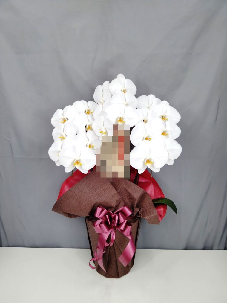 胡蝶蘭の実際にお届けした写真です。花秘書では発送前に写真をメールで送信致しますので安心して大切な顧客や取引様へのギフトにご利用頂けます。