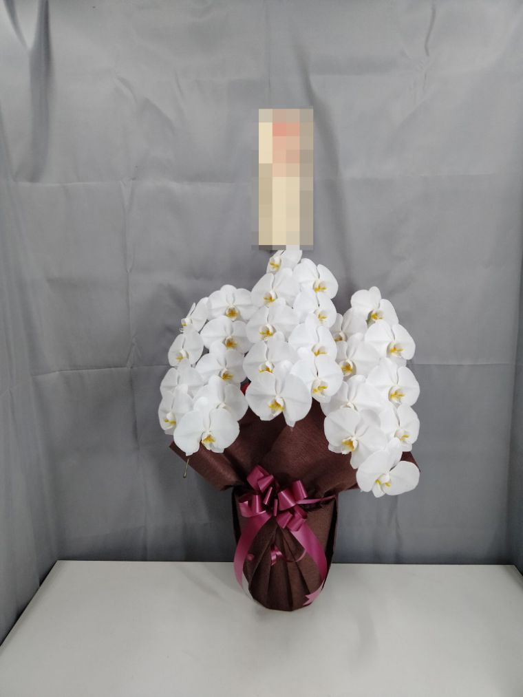 胡蝶蘭の実際にお届けした写真です。花秘書では発送前に写真をメールで送信致しますので安心して大切な顧客や取引様へのギフトにご利用頂けます。