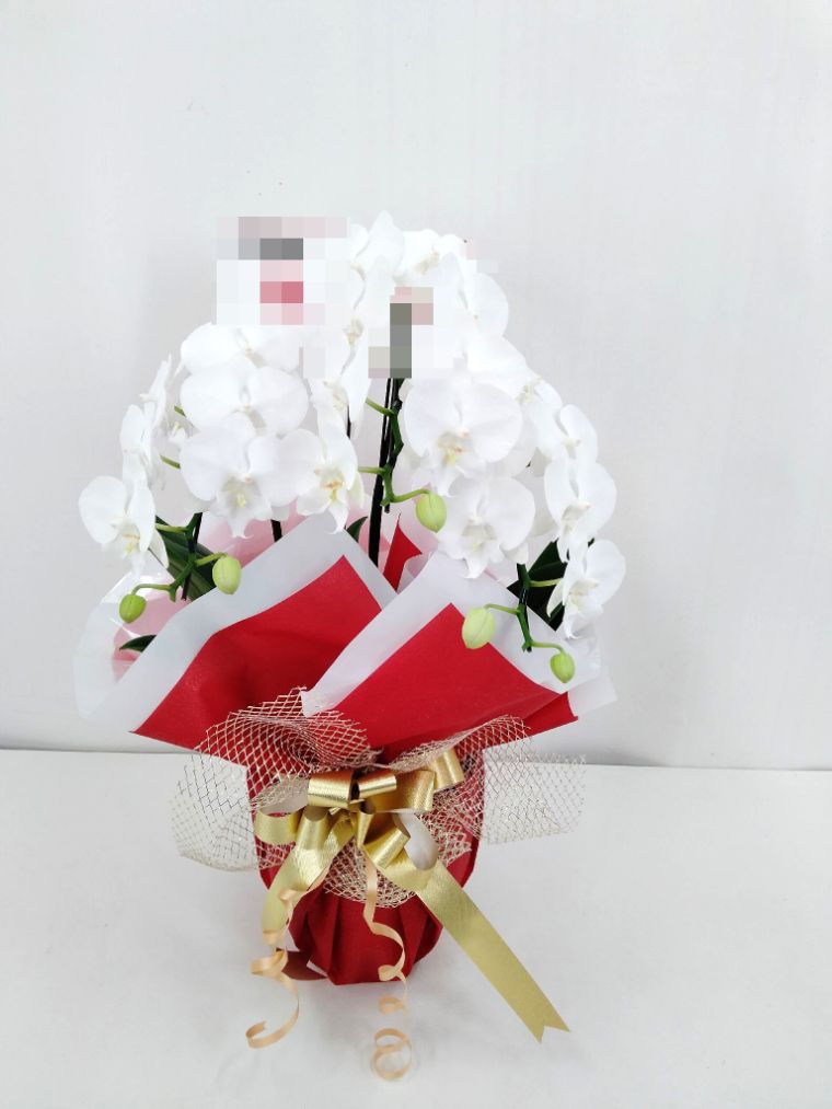 胡蝶蘭の実際にお届けした写真です。花秘書では発送前に写真をメールで送信致しますので安心して大切な顧客や取引様へのギフトにご利用頂けます。