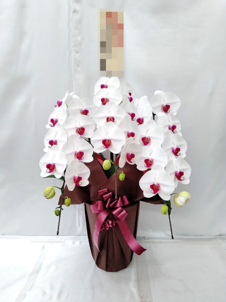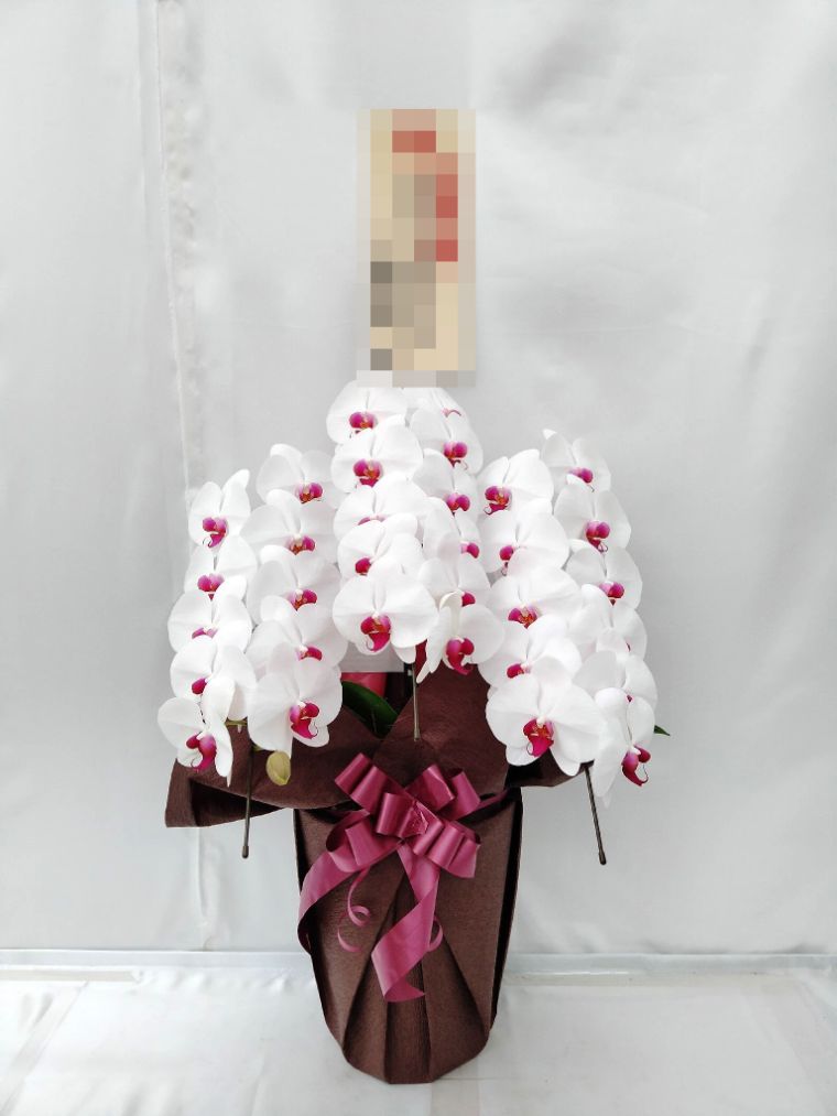 胡蝶蘭の実際にお届けした写真です。花秘書では発送前に写真をメールで送信致しますので安心して大切な顧客や取引様へのギフトにご利用頂けます。