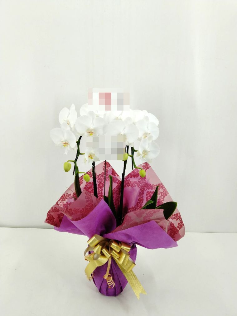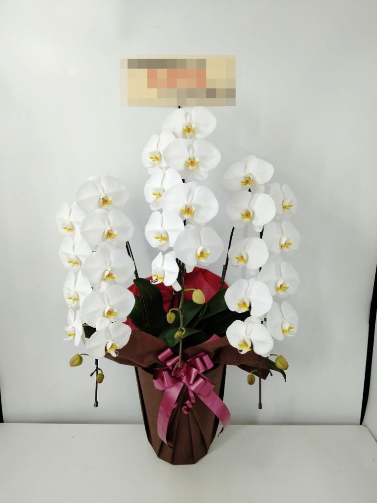 胡蝶蘭の実際にお届けした写真です。花秘書では発送前に写真をメールで送信致しますので安心して大切な顧客や取引様へのギフトにご利用頂けます。
