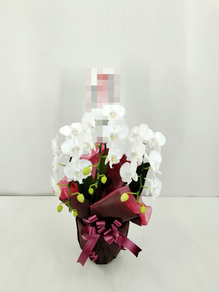 胡蝶蘭の実際にお届けした写真です。花秘書では発送前に写真をメールで送信致しますので安心して大切な顧客や取引様へのギフトにご利用頂けます。