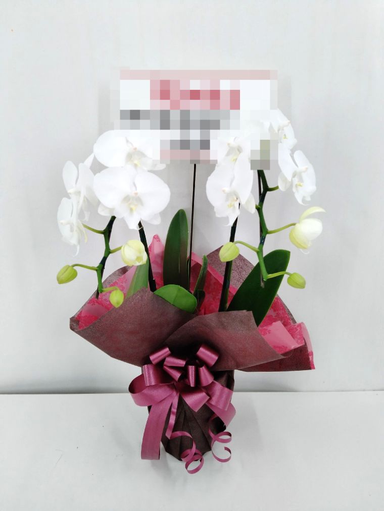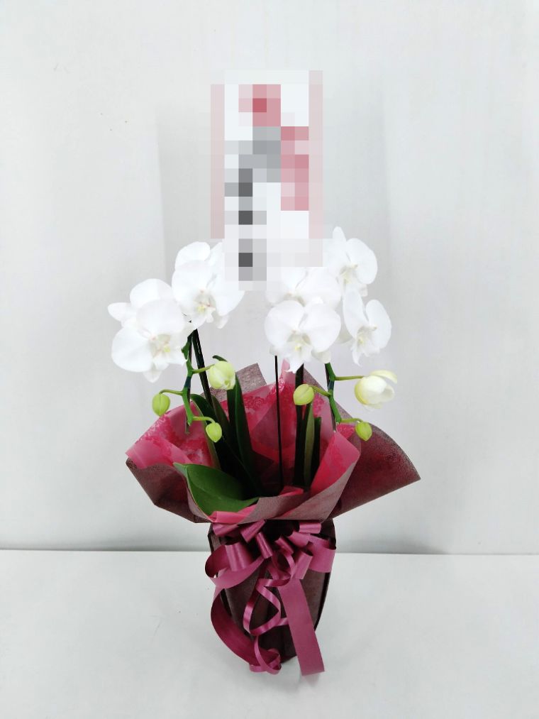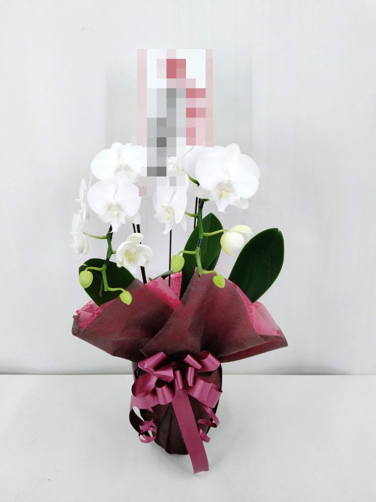 胡蝶蘭の実際にお届けした写真です。花秘書では発送前に写真をメールで送信致しますので安心して大切な顧客や取引様へのギフトにご利用頂けます。