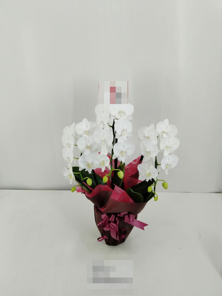 胡蝶蘭の実際にお届けした写真です。花秘書では発送前に写真をメールで送信致しますので安心して大切な顧客や取引様へのギフトにご利用頂けます。