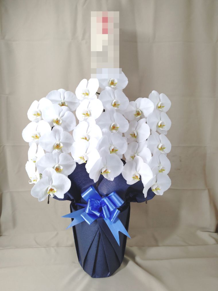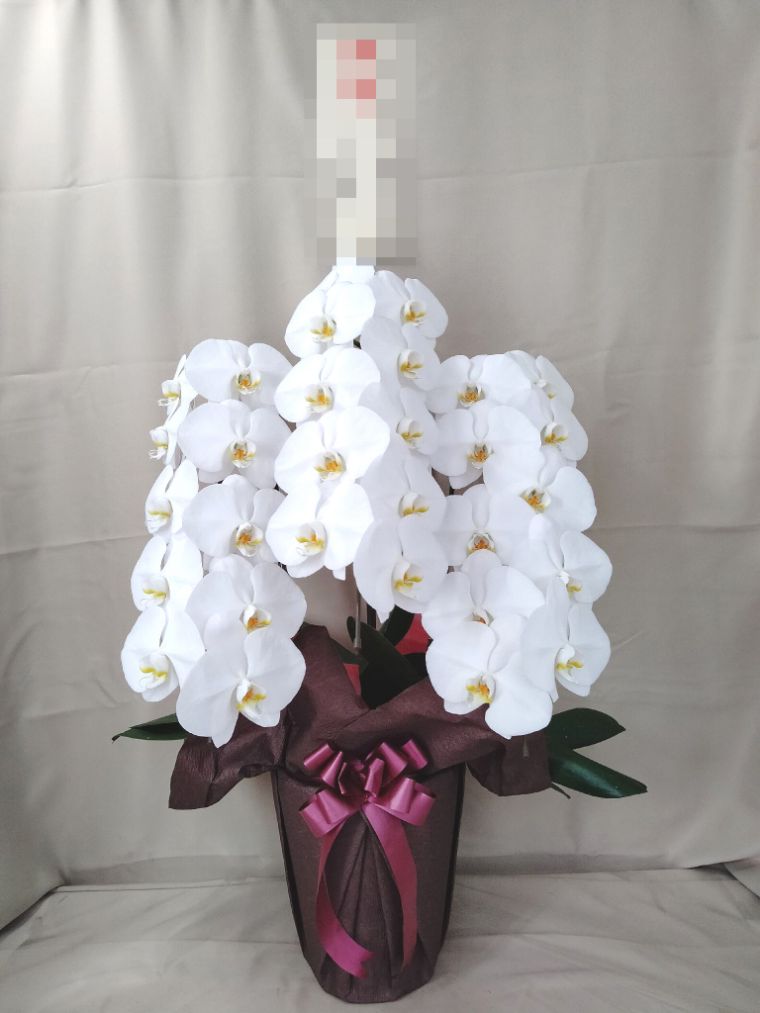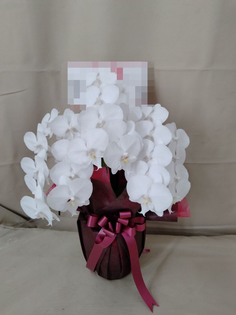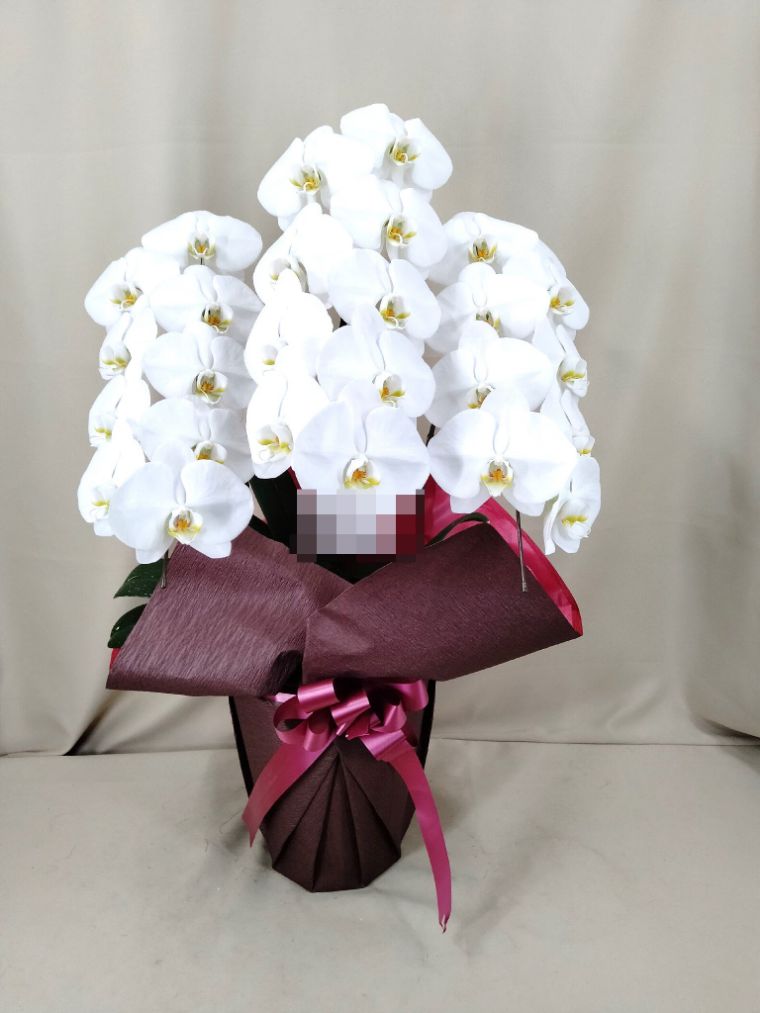 胡蝶蘭の実際にお届けした写真です。花秘書では発送前に写真をメールで送信致しますので安心して大切な顧客や取引様へのギフトにご利用頂けます。
