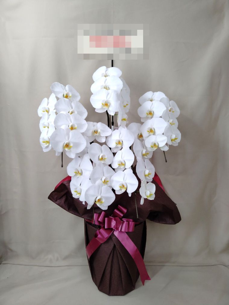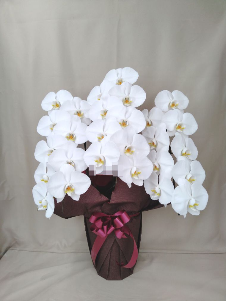 胡蝶蘭の実際にお届けした写真です。花秘書では発送前に写真をメールで送信致しますので安心して大切な顧客や取引様へのギフトにご利用頂けます。