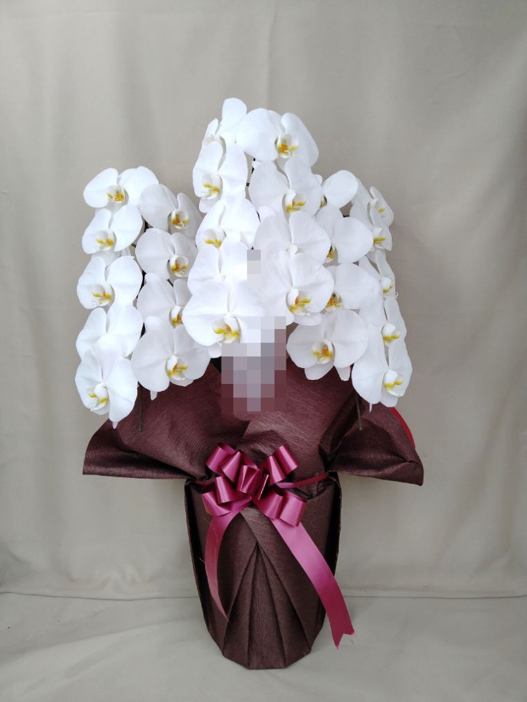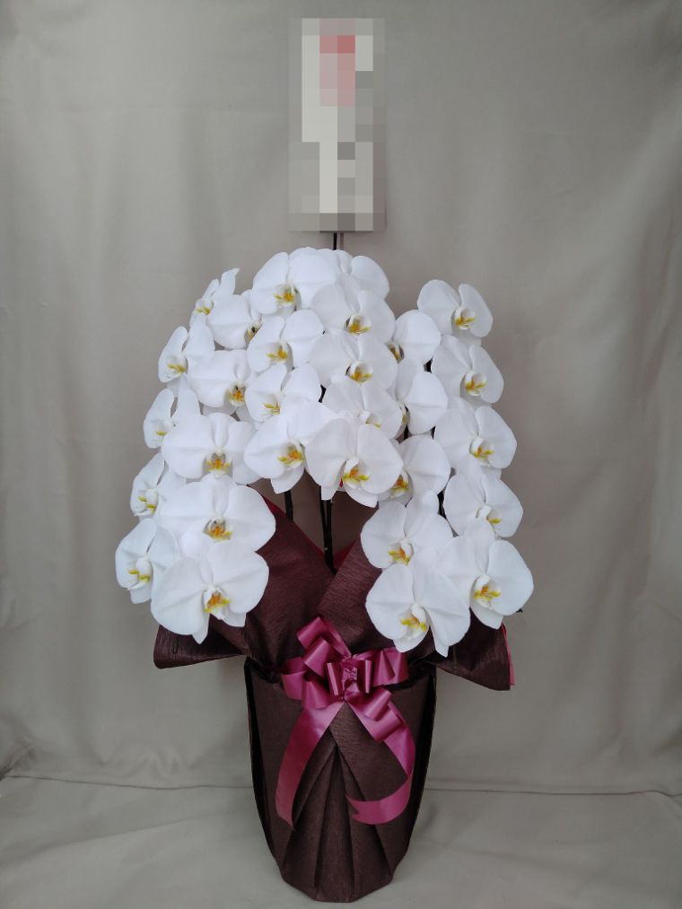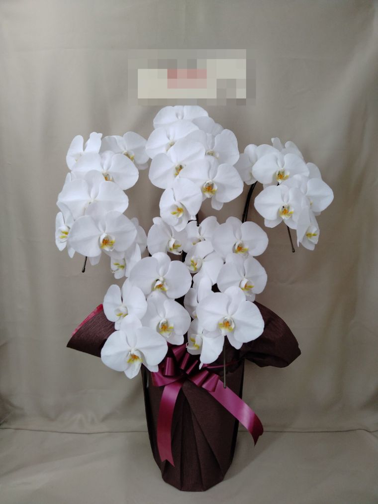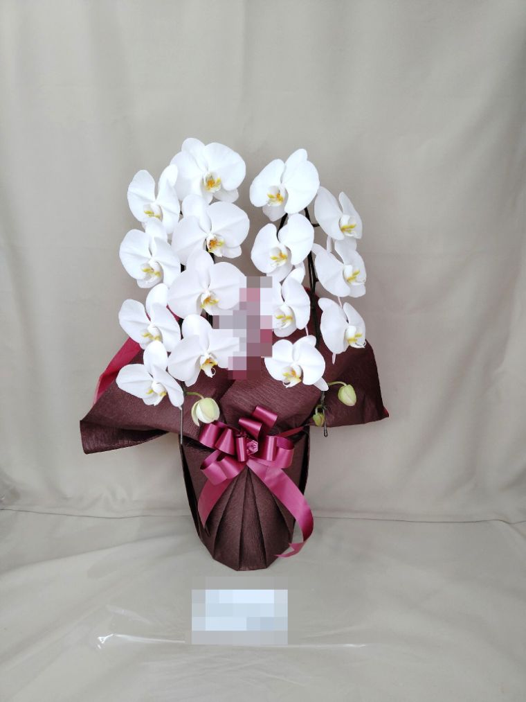 胡蝶蘭の実際にお届けした写真です。花秘書では発送前に写真をメールで送信致しますので安心して大切な顧客や取引様へのギフトにご利用頂けます。