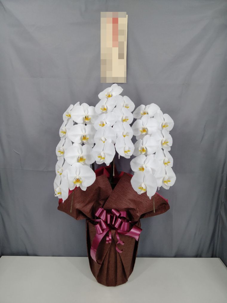 胡蝶蘭の実際にお届けした写真です。花秘書では発送前に写真をメールで送信致しますので安心して大切な顧客や取引様へのギフトにご利用頂けます。
