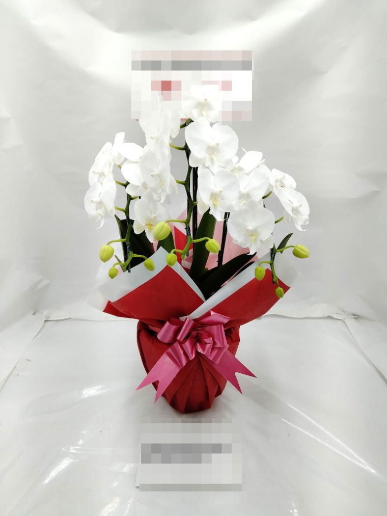 胡蝶蘭の実際にお届けした写真です。花秘書では発送前に写真をメールで送信致しますので安心して大切な顧客や取引様へのギフトにご利用頂けます。