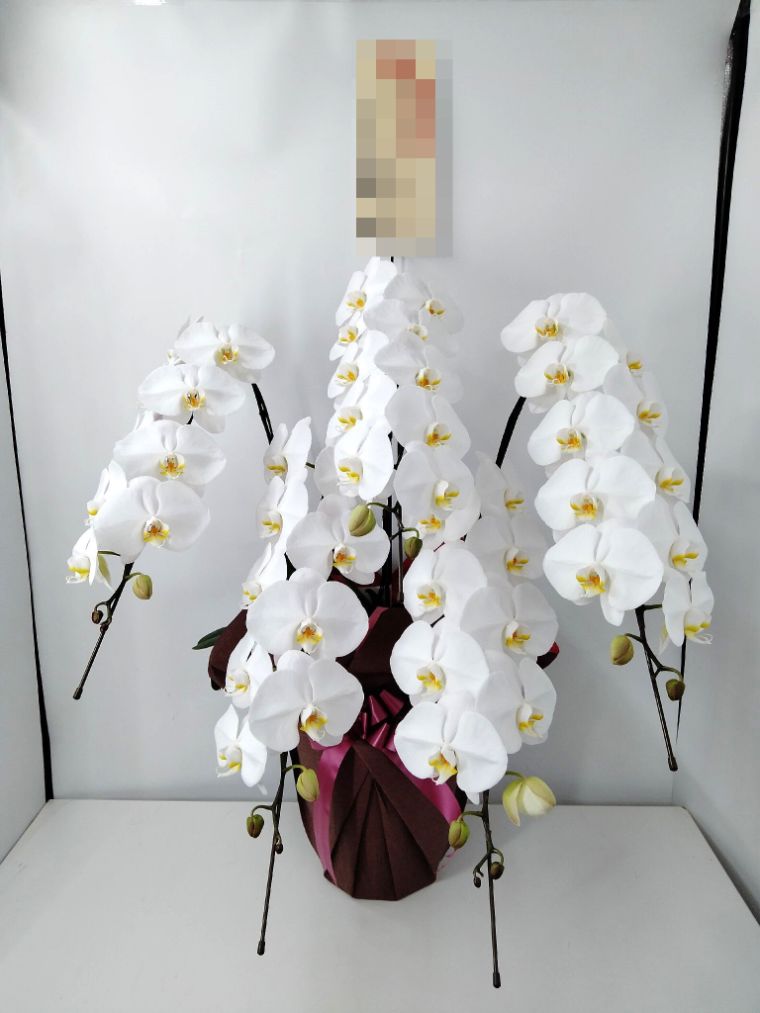 胡蝶蘭の実際にお届けした写真です。花秘書では発送前に写真をメールで送信致しますので安心して大切な顧客や取引様へのギフトにご利用頂けます。