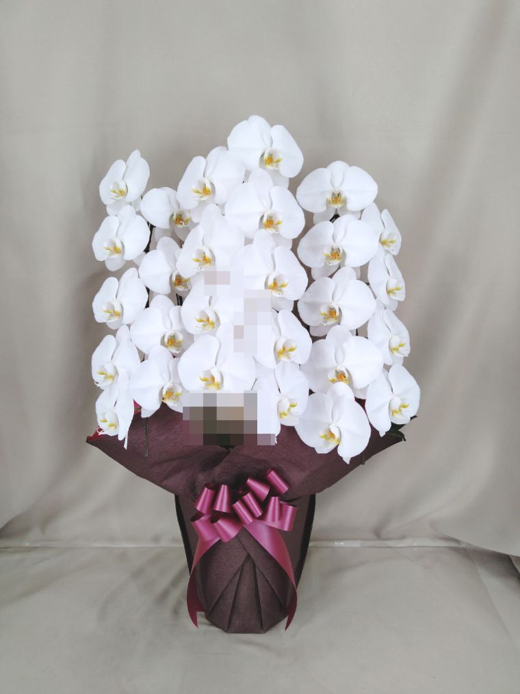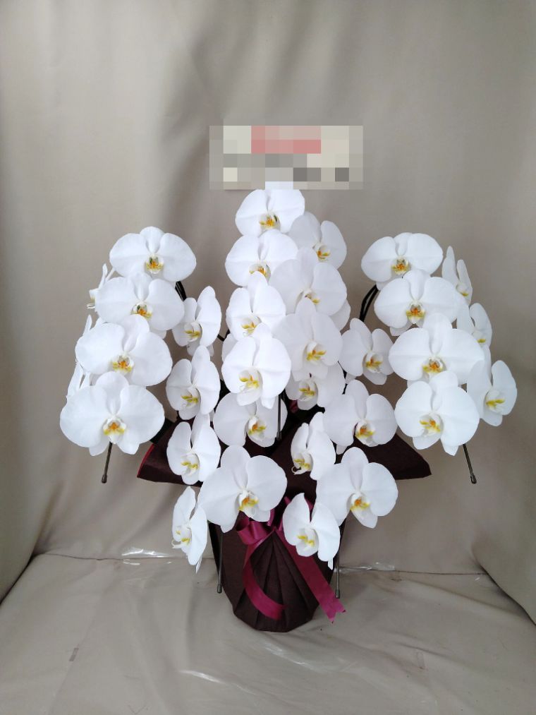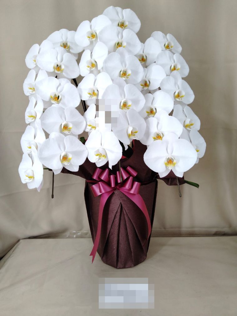 胡蝶蘭の実際にお届けした写真です。花秘書では発送前に写真をメールで送信致しますので安心して大切な顧客や取引様へのギフトにご利用頂けます。