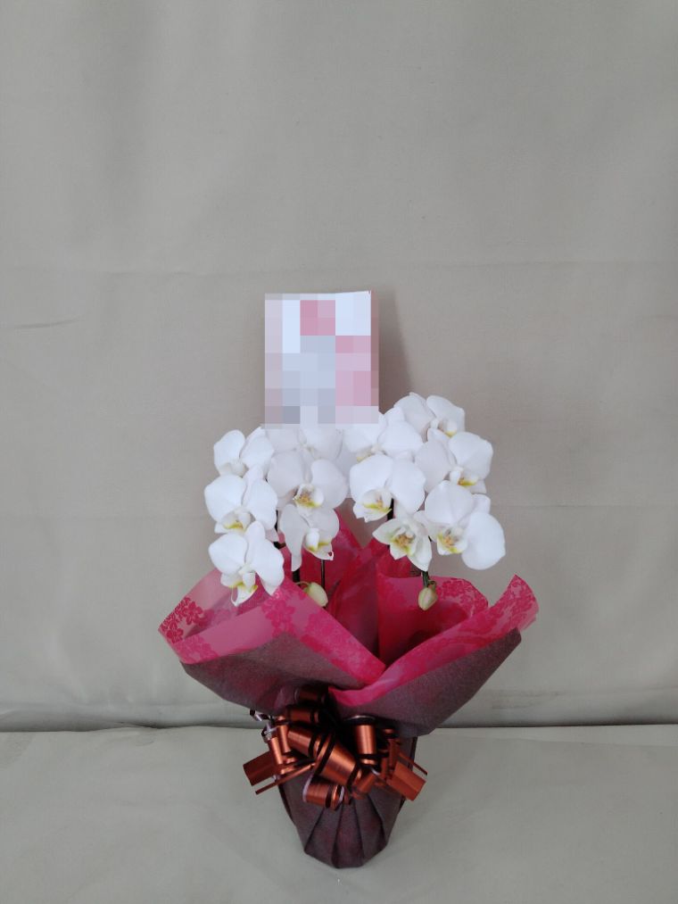 胡蝶蘭の実際にお届けした写真です。花秘書では発送前に写真をメールで送信致しますので安心して大切な顧客や取引様へのギフトにご利用頂けます。