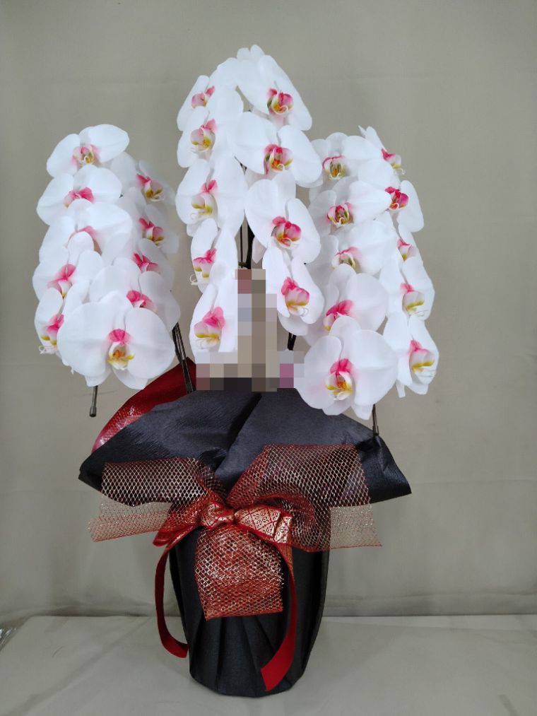 胡蝶蘭の実際にお届けした写真です。花秘書では発送前に写真をメールで送信致しますので安心して大切な顧客や取引様へのギフトにご利用頂けます。
