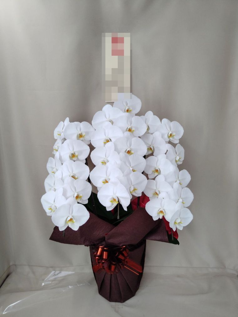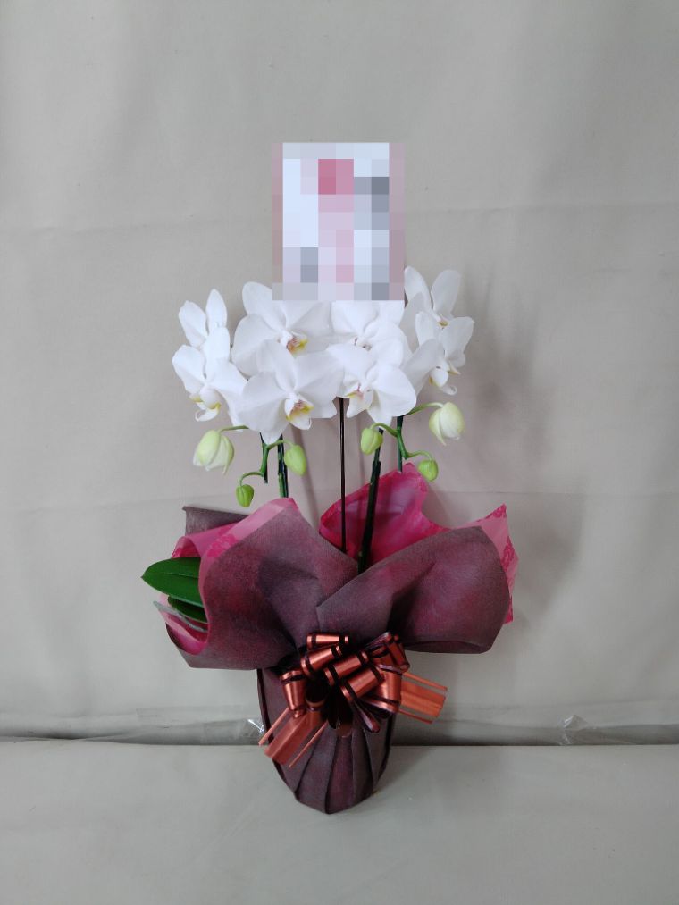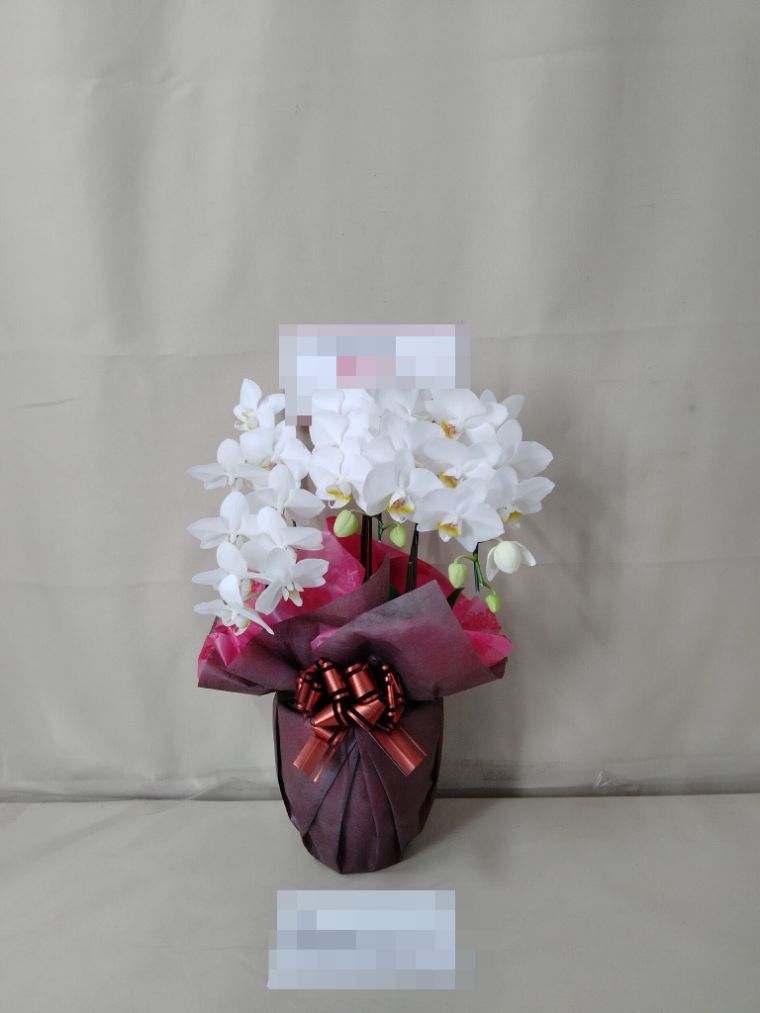 胡蝶蘭の実際にお届けした写真です。花秘書では発送前に写真をメールで送信致しますので安心して大切な顧客や取引様へのギフトにご利用頂けます。