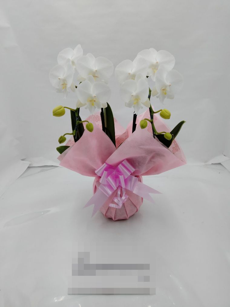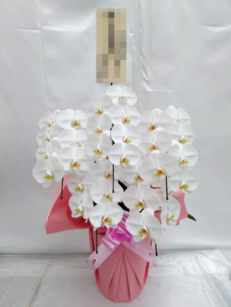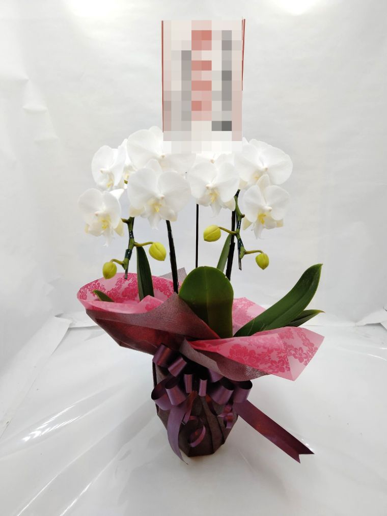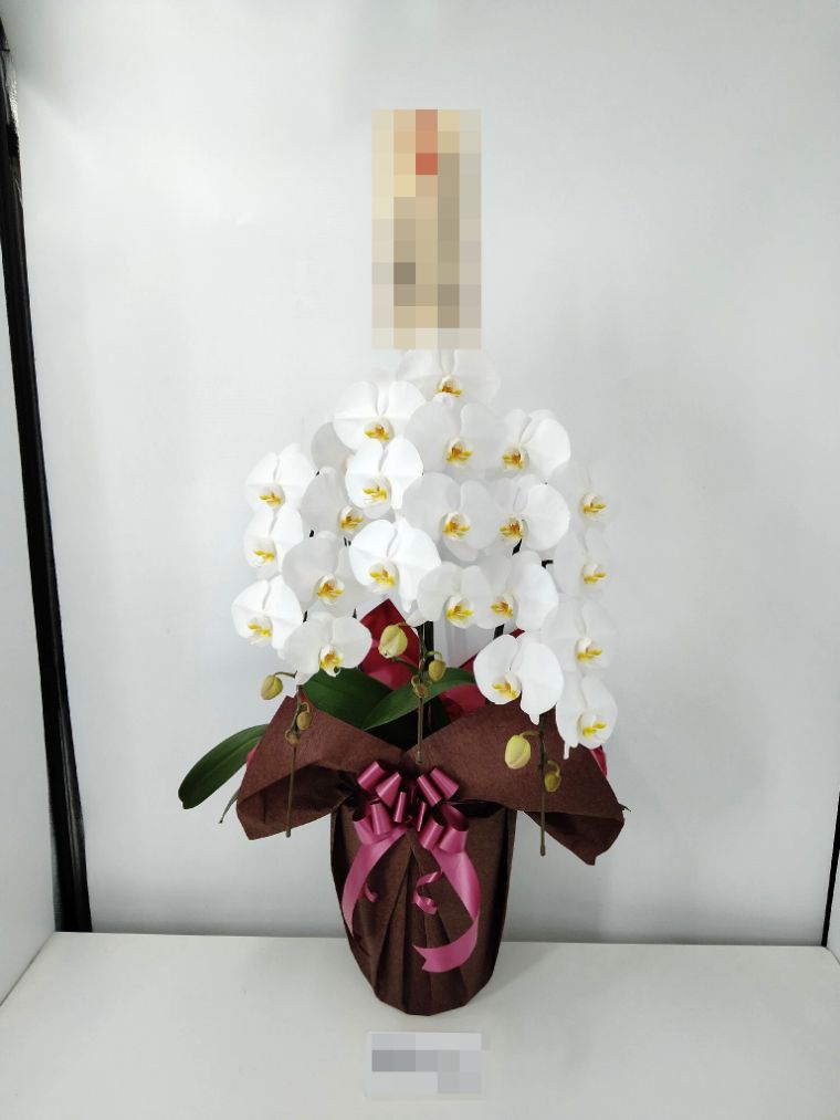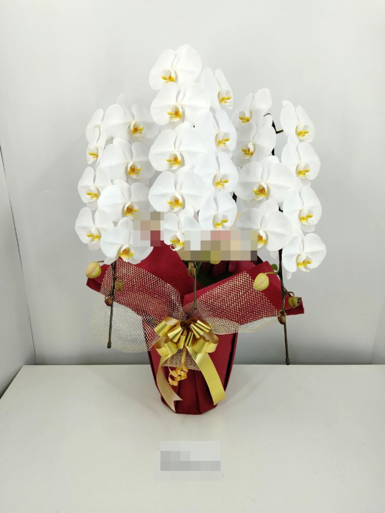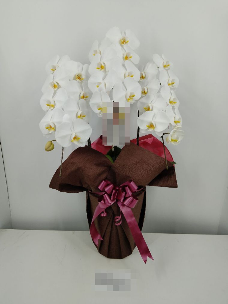 胡蝶蘭の実際にお届けした写真です。花秘書では発送前に写真をメールで送信致しますので安心して大切な顧客や取引様へのギフトにご利用頂けます。